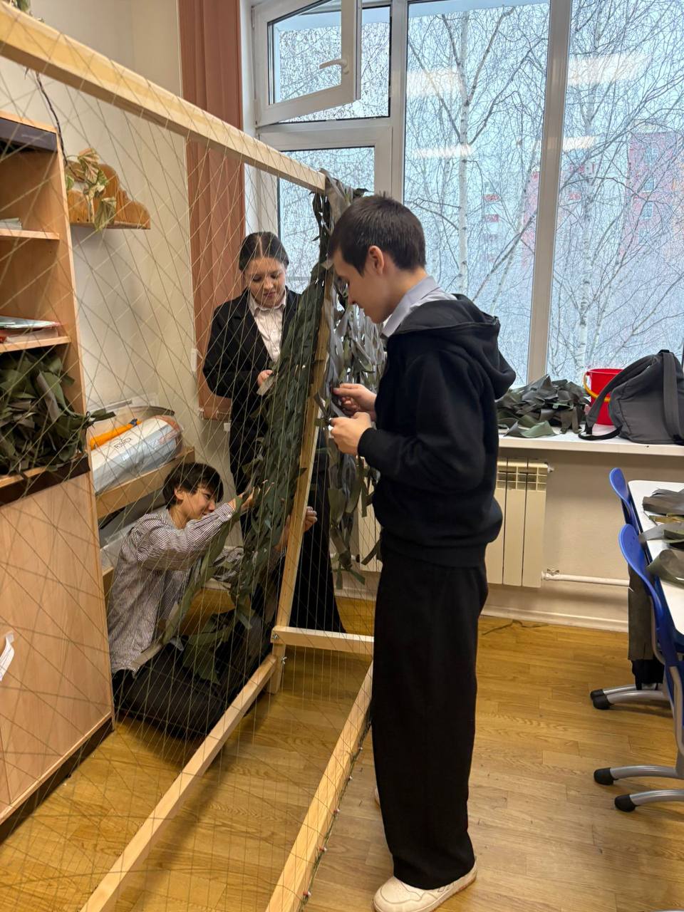 В средней школе №7 города Мирного кипит работа, которая не входит в обычное расписание, но имеет огромное значение. Ученики всех возрастов здесь своими руками плетут маскировочные сети для российских бойцов, участвующих в специальной военной операции.