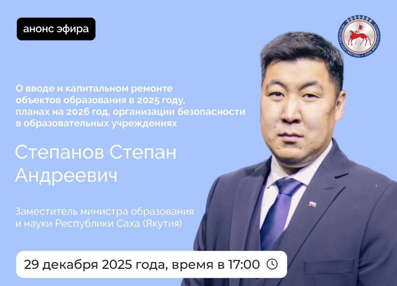 Замминистра образования и науки республики Степан Степанов в сегодня, 29 декабря, проведет прямой эфир на официальных страницах администрации главы и правительства республики в социальных сетях «ВКонтакте» и «Одноклассники»