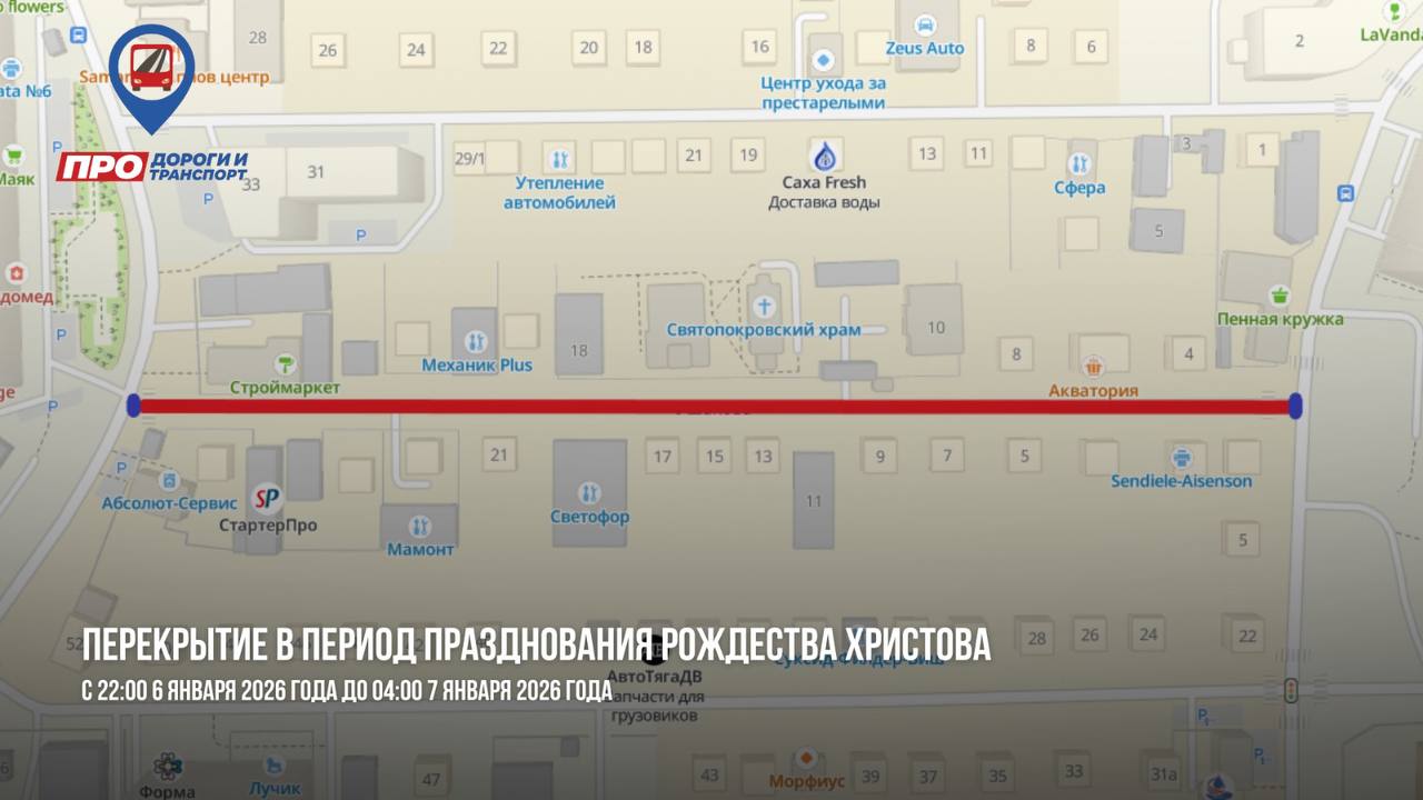 С 22:00 6 января до 04:00 7 января в Якутске перекроют несколько центральных улиц.