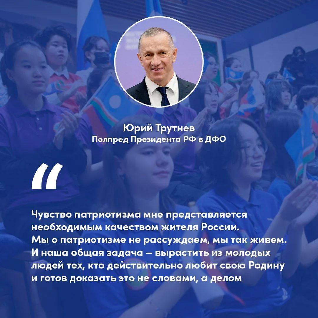 «Тысячи студентов, волонтеров помогают собирать гуманитарную помощь, проводят патриотические акции, занимаются изготовлением снаряжения для бойцов. Хочу им сказать спасибо. Это важное и нужное дело. Это важно для тех ребят, который находятся на передовой и отстаивают интересы России», – сказал Заместитель Председателя Правительства РФ – полномочный представитель Президента РФ в ДФО, председатель жюри премии Юрий Трутнев.