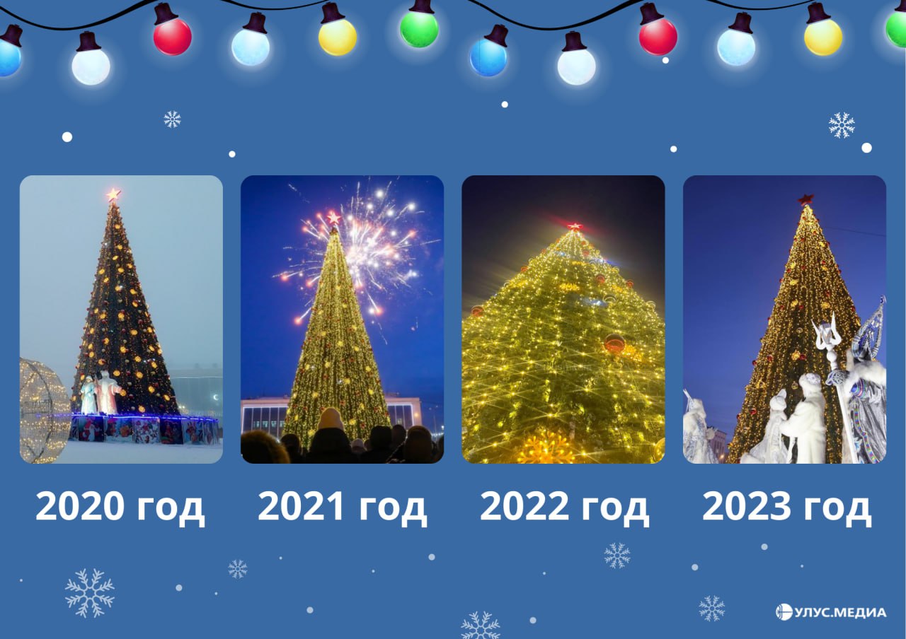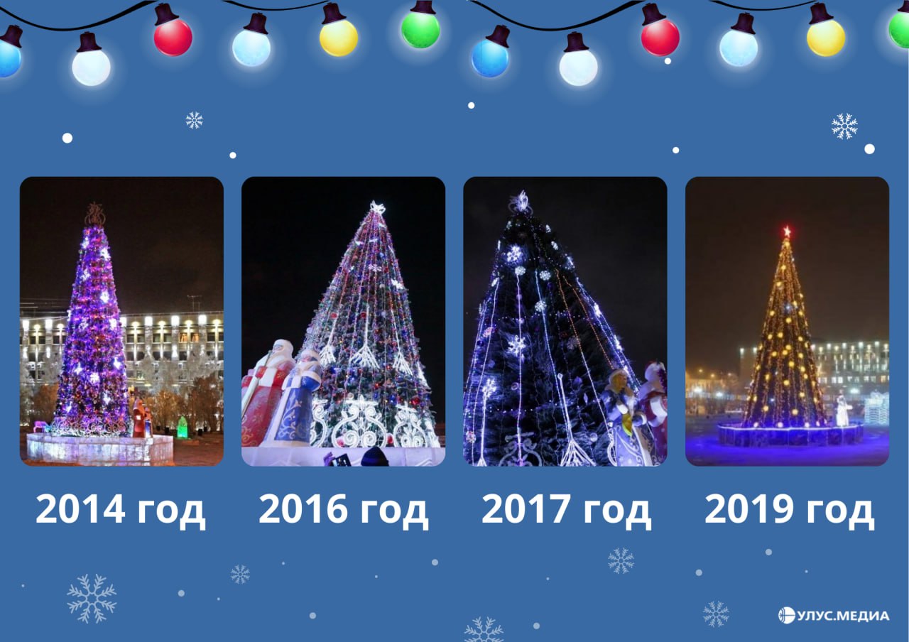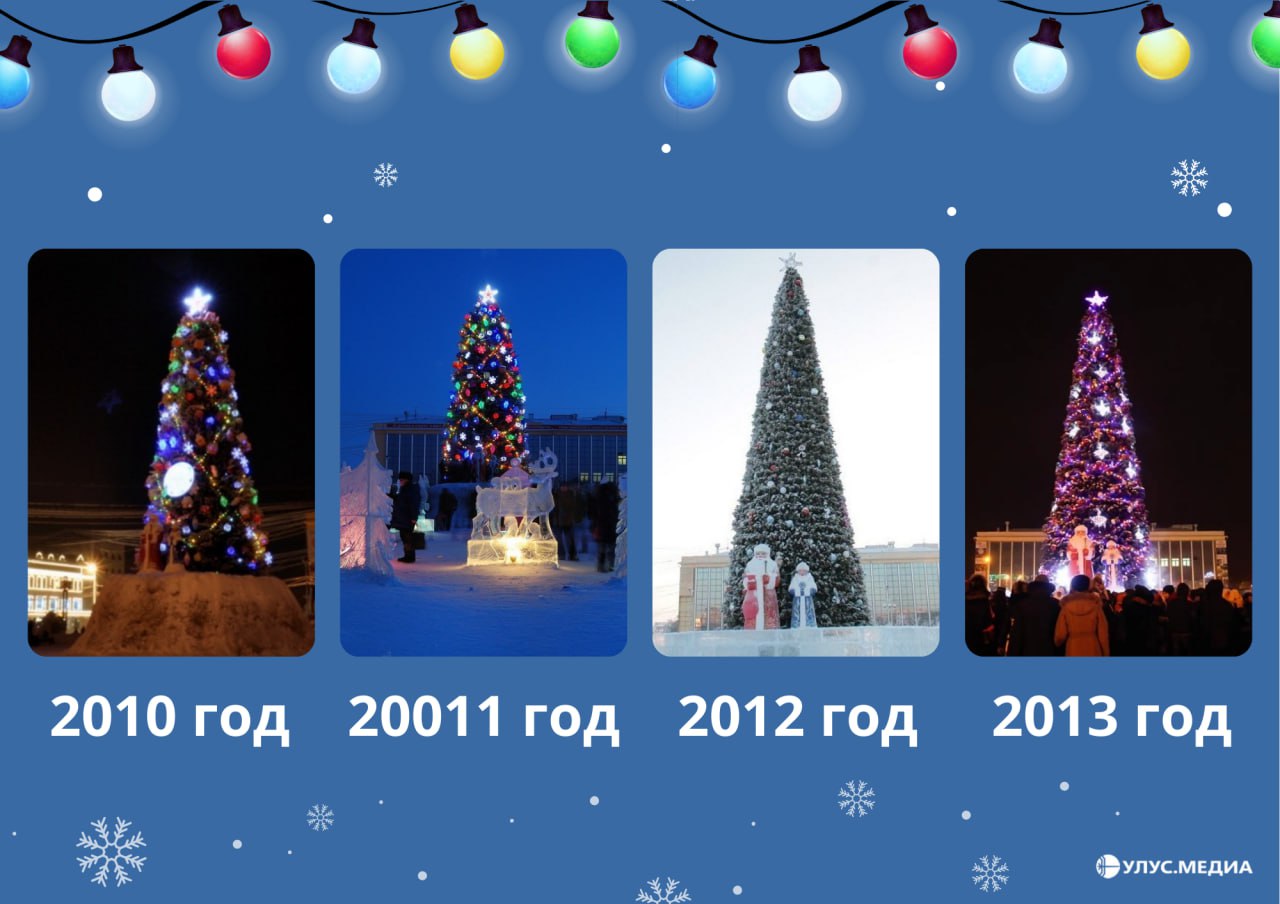 За последние десятилетия главная новогодняя ёлка Якутска меняла свой облик множество раз. Её стиль и форма трансформировались со временем, отражая эпоху.