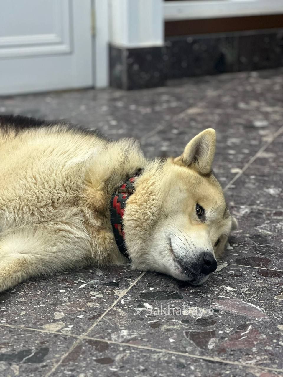 Ухоженный и добрый пес второй день ждёт хозяина пес в холле офисного здания на Аммосова 18.