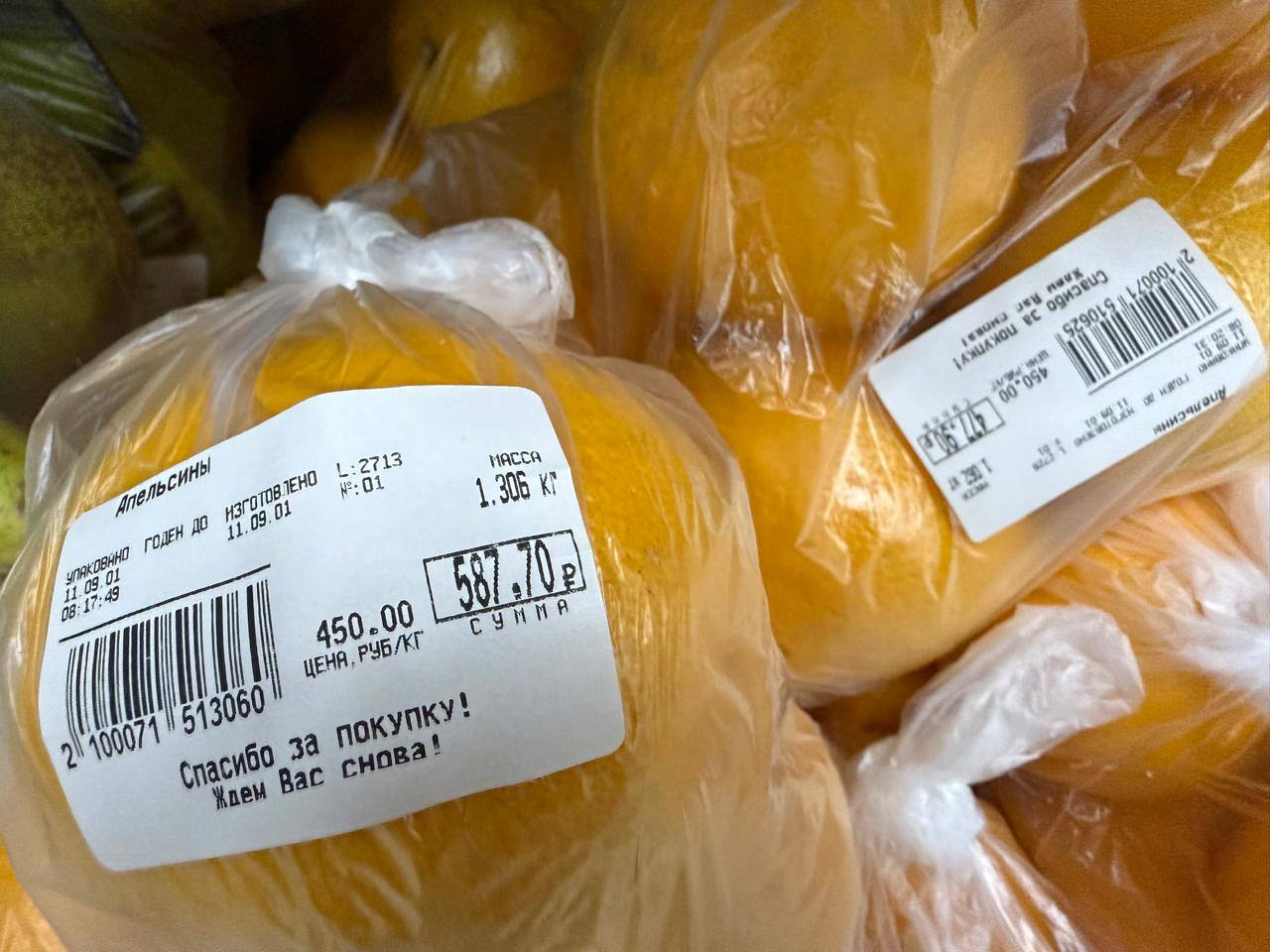 Цены на продукты в торговой точке посёлка Белая Гора следующие: яйца – 14 руб. 10 коп., яблоки – 406 руб. 50 коп., мандарины – 500 руб, груша – 600 руб., апельсины – 450 руб., болгарский перец – 535 руб, виноград – 745 руб. итд