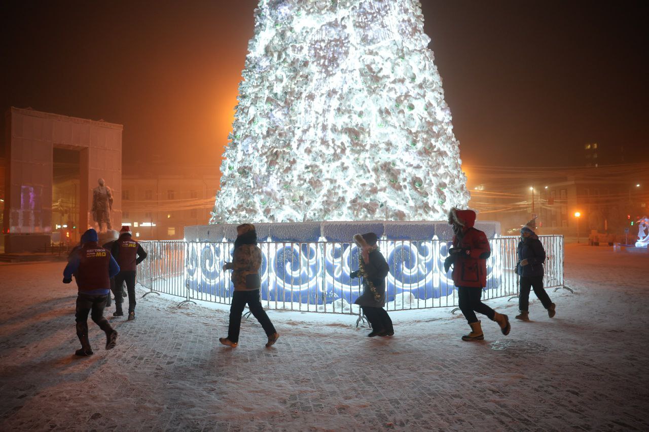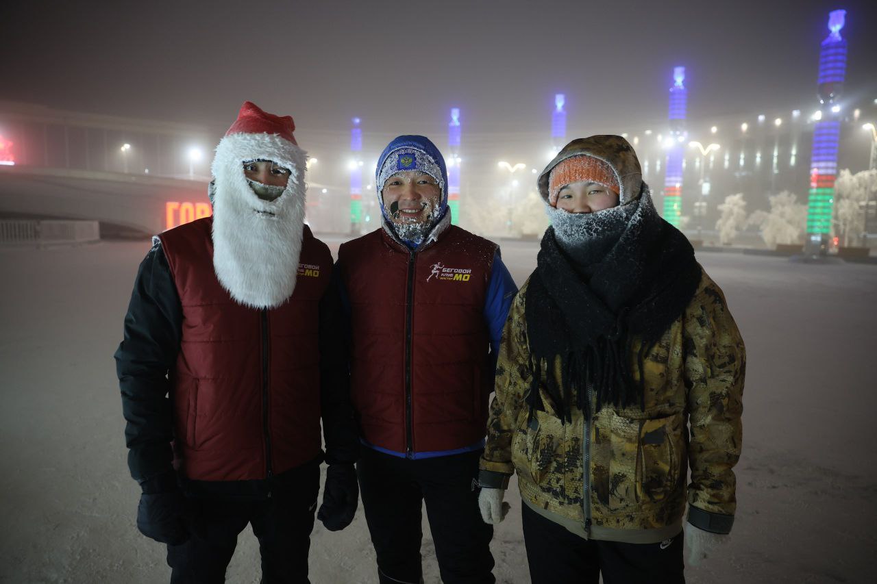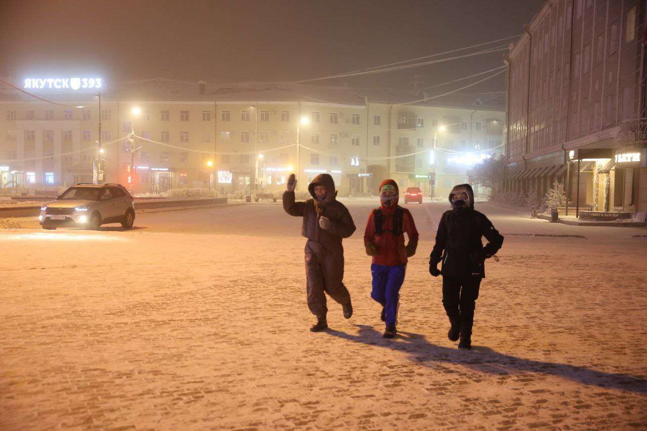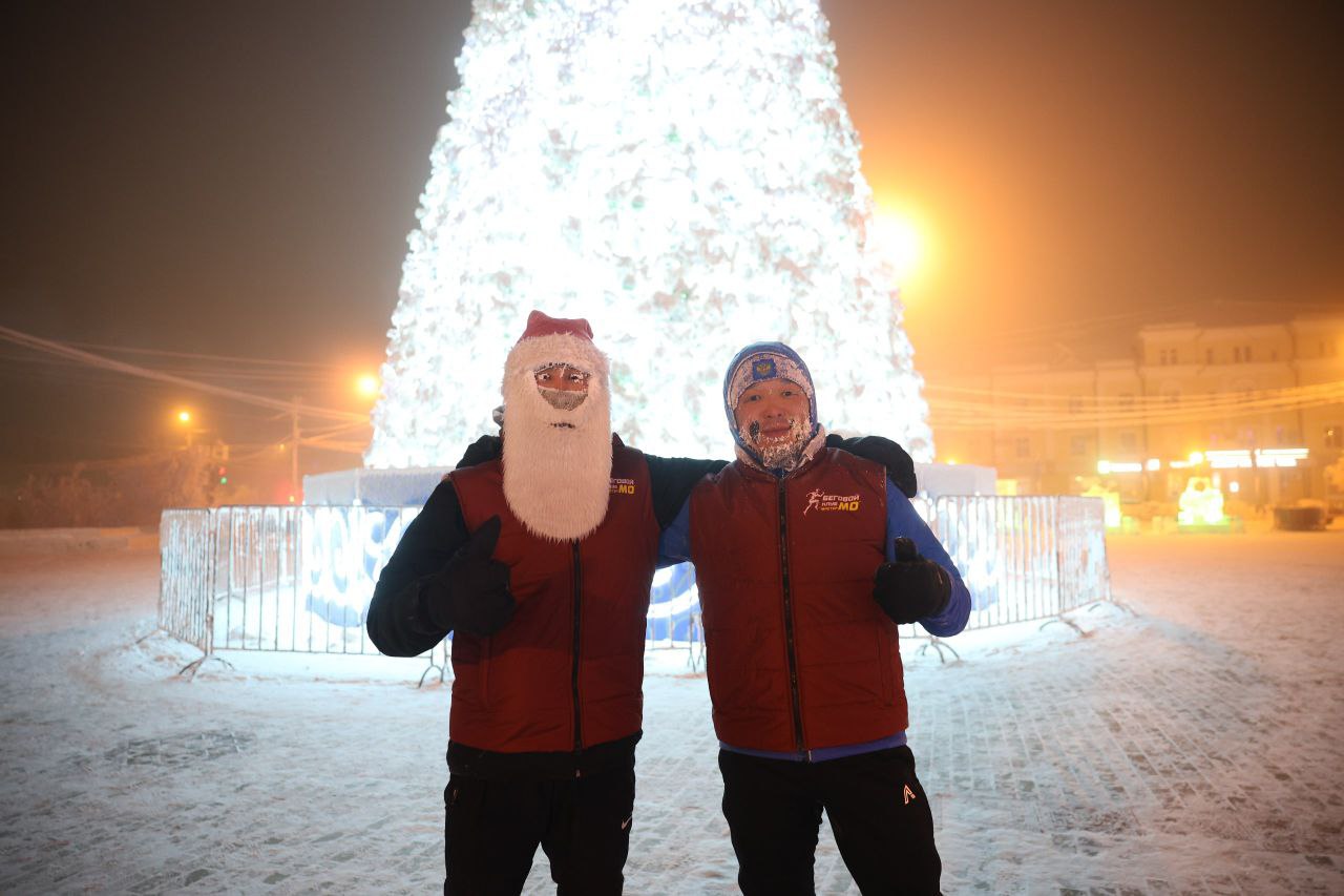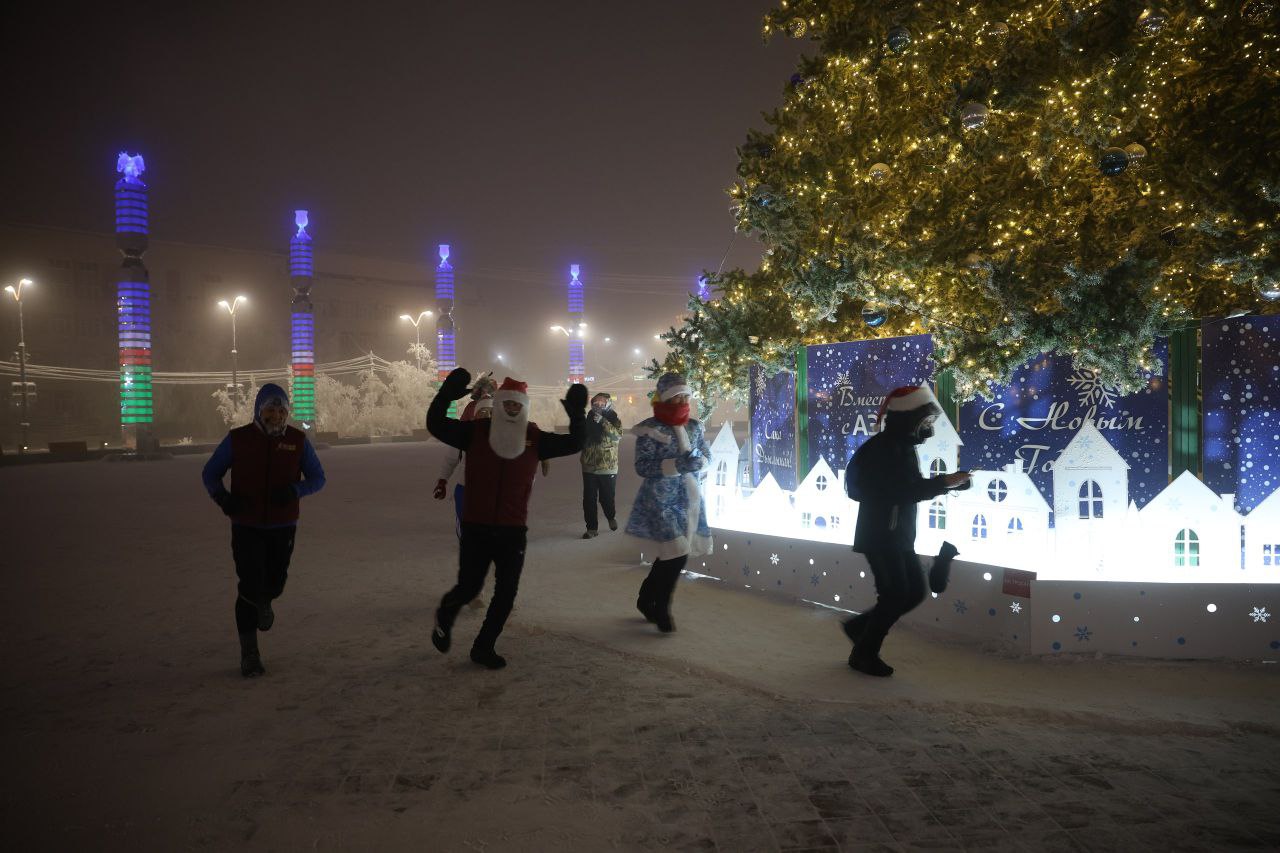 В Якутске 31 декабря прошел новогодний забег. Любители бега предолели дистанцию от площади Дружбы до площади Орджоникидзе. Температура воздуха сегодня -43 градуса.
