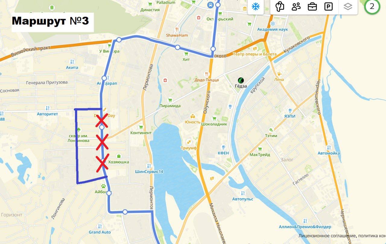 В случае продления аварийно-восстановительных работ по устранению повреждения газопровода на ул. Чайковского автобусные маршруты, проходящие через данный участок, могут быть временно направлены по объездным схемам (см. фото).