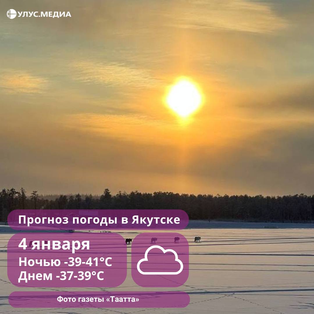 В Якутске ночью небольшой снег, днем преимущественно без осадков, ночью и утром туман, ветер северо-западный 1-5 м/с. Температура воздуха ночью -39-41°, днем -37-39°.