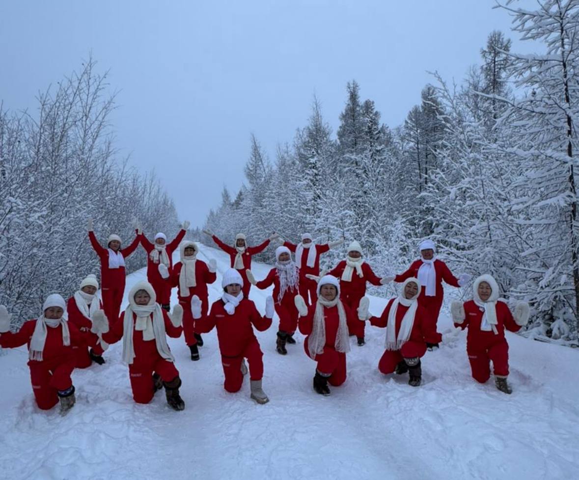 После новогодних праздников участницы объединения «Саара» из села Малыкай Нюрбинского района собрались на природе. Их одинаковые праздничные костюмы стали яркой деталью прогулки и создали тёплую атмосферу встречи.