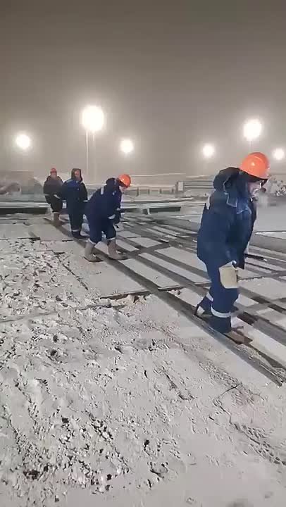 Якутск, -50°C - выносливые русские рабочие продолжают строительство моста через реку Лена