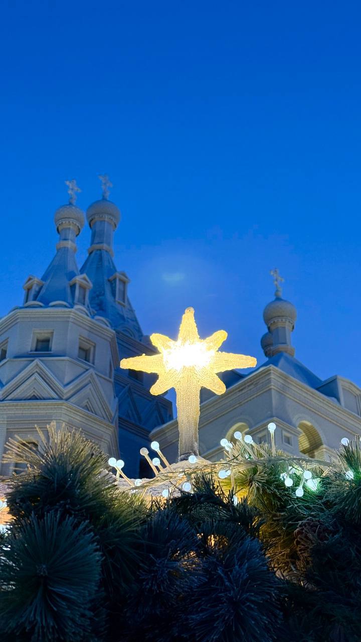 Именно эти рождественские виды, озарённые особым праздничным светом, в день Рождества Христова опубликовала в своём телеграмм-канале администрация города Удачного, поделившись с горожанами прекрасным образом храма.