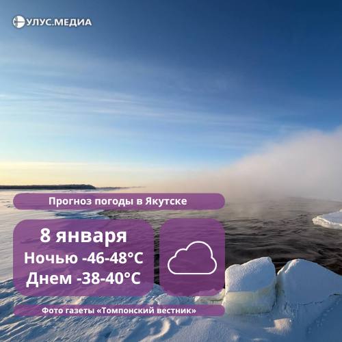 В Якутске завтра преимущественно без осадков, туман, ветер северо-восточный 2-6 м/с, температура ночью -46-48°, днем -38-40°.