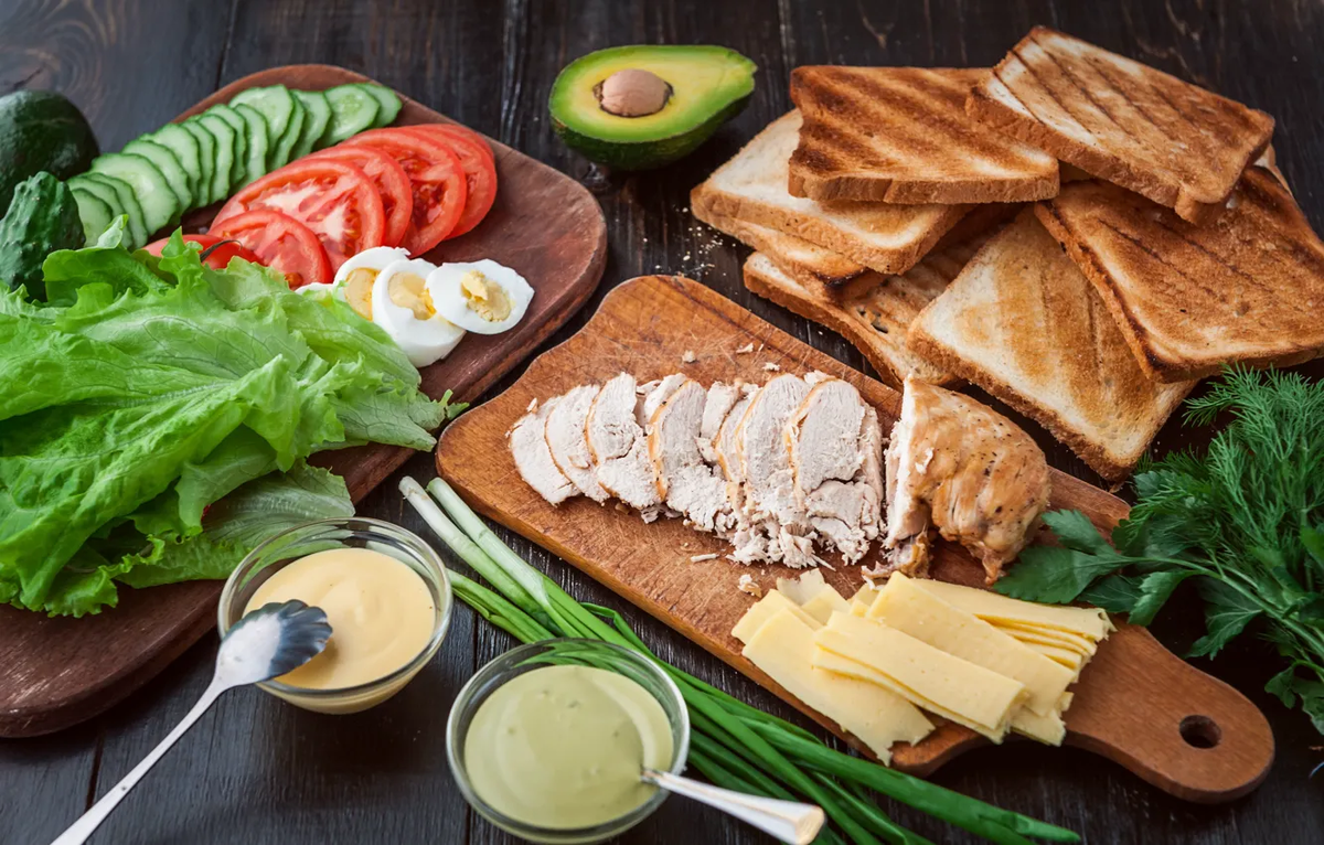Хлеб также можно поджарить на сковороде или в тостере, чтобы он стал хрустящим. При сборке сэндвича на один ломтик хлеба наносится столовая ложка соуса песто, после чего укладываются листья салата, ломтики курицы, авокадо и нарезанные помидоры. Накрыть вторым ломтиком хлеба, опционально можно добавить немного песто или сливочного сыра и слегка прижать сэндвич, чтобы все ингредиенты держались вместе.