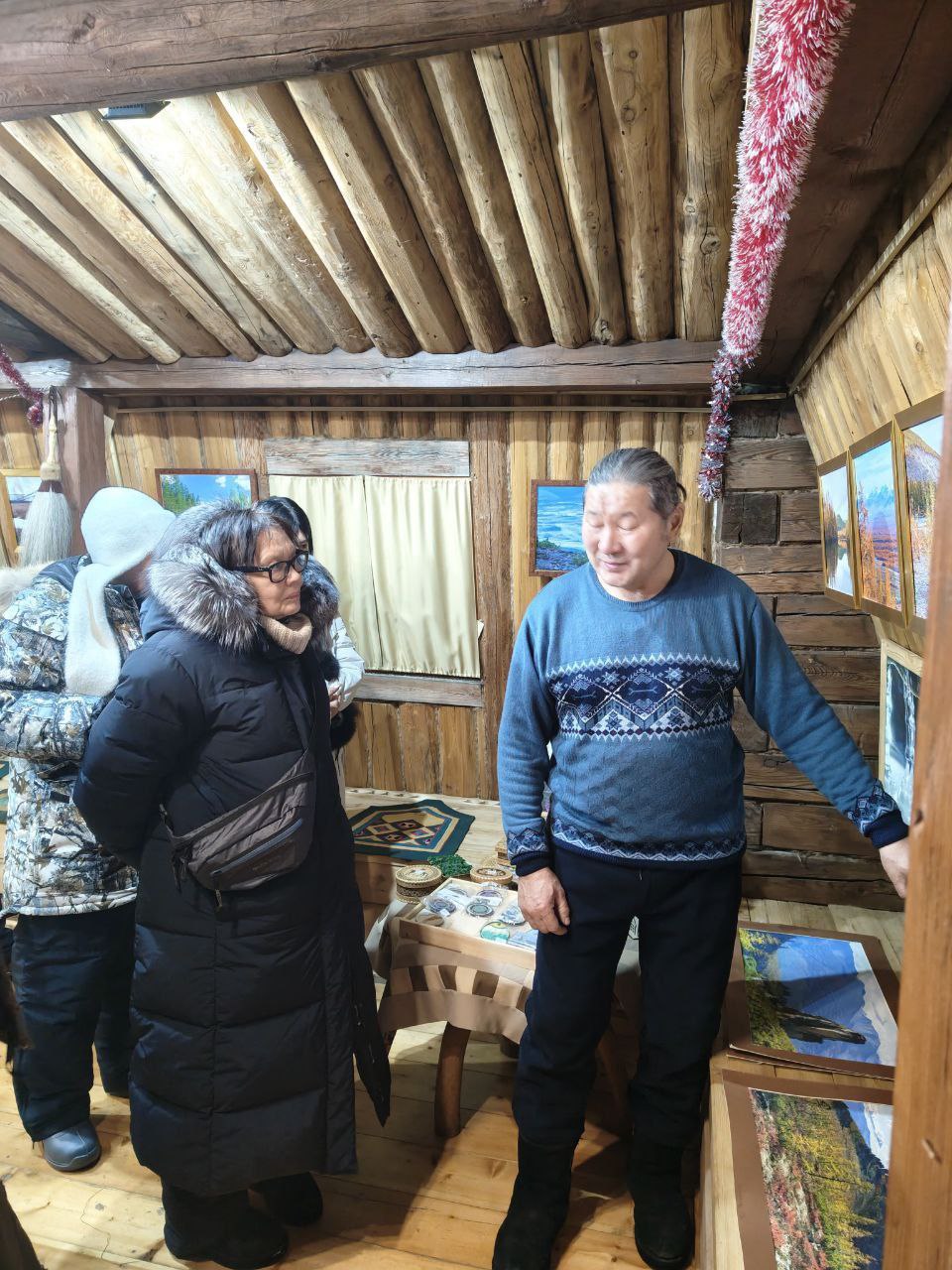 В эти дни в фотогалерее, стилизованной под традиционный якутский балаган (юрту), житель села Оймякона Семен Сивцев-ймкн Сэмэнэ