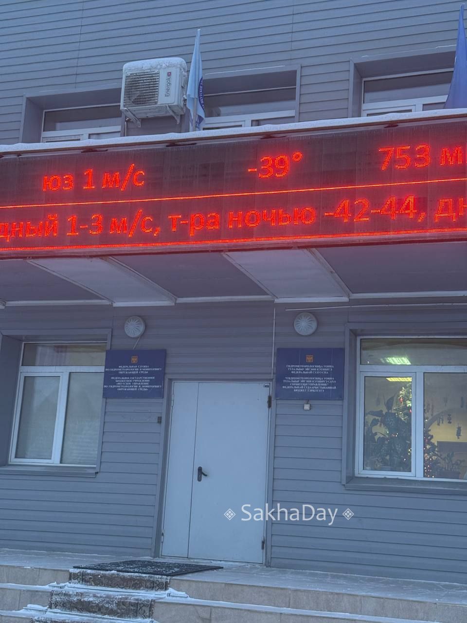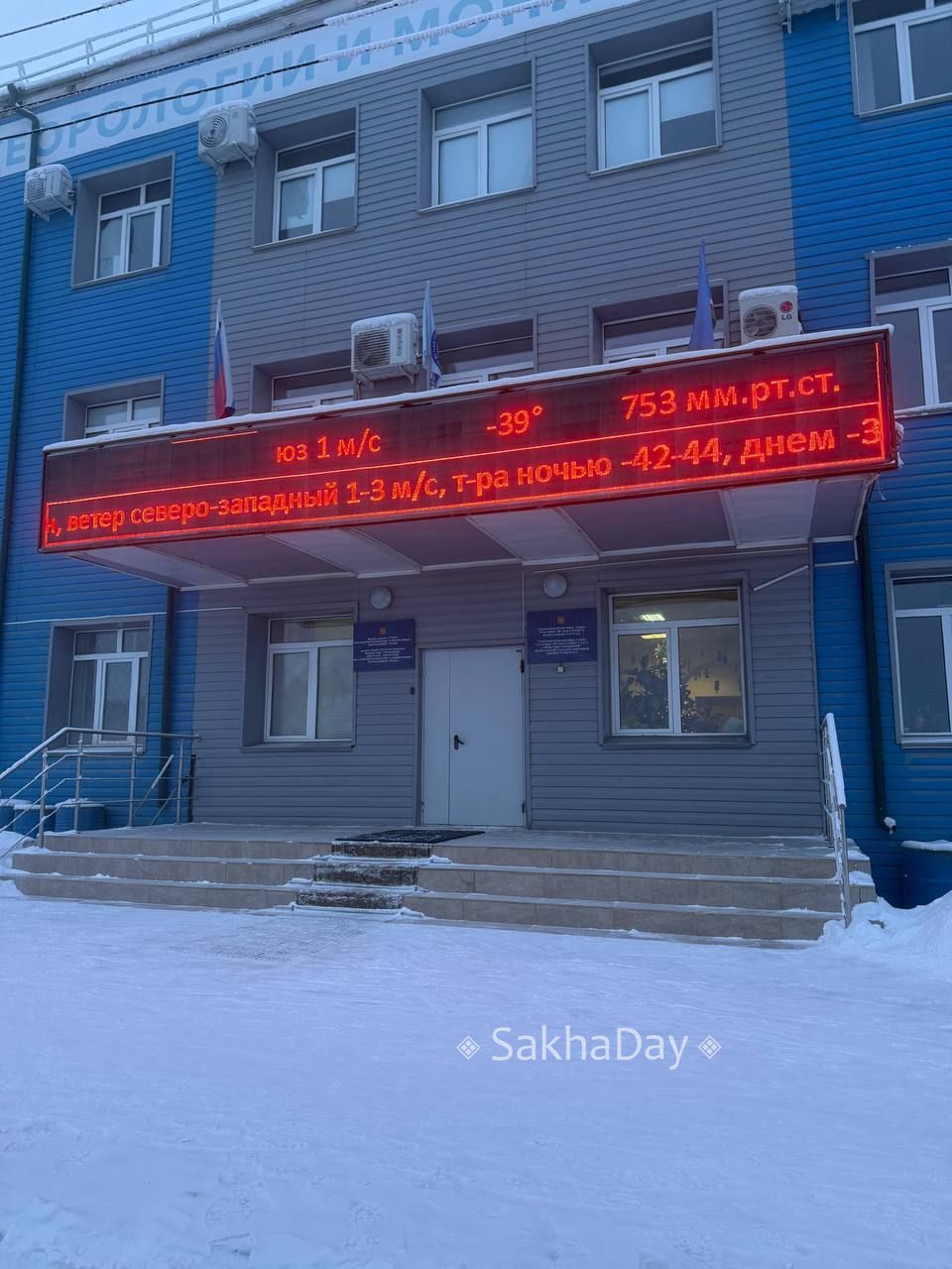 Слабый снег, туман, ветер северо-западный 1-3 м/с.Температура воздуха ночью -42-44°, днём -39-41°.@yakutsk_stolica #Погода