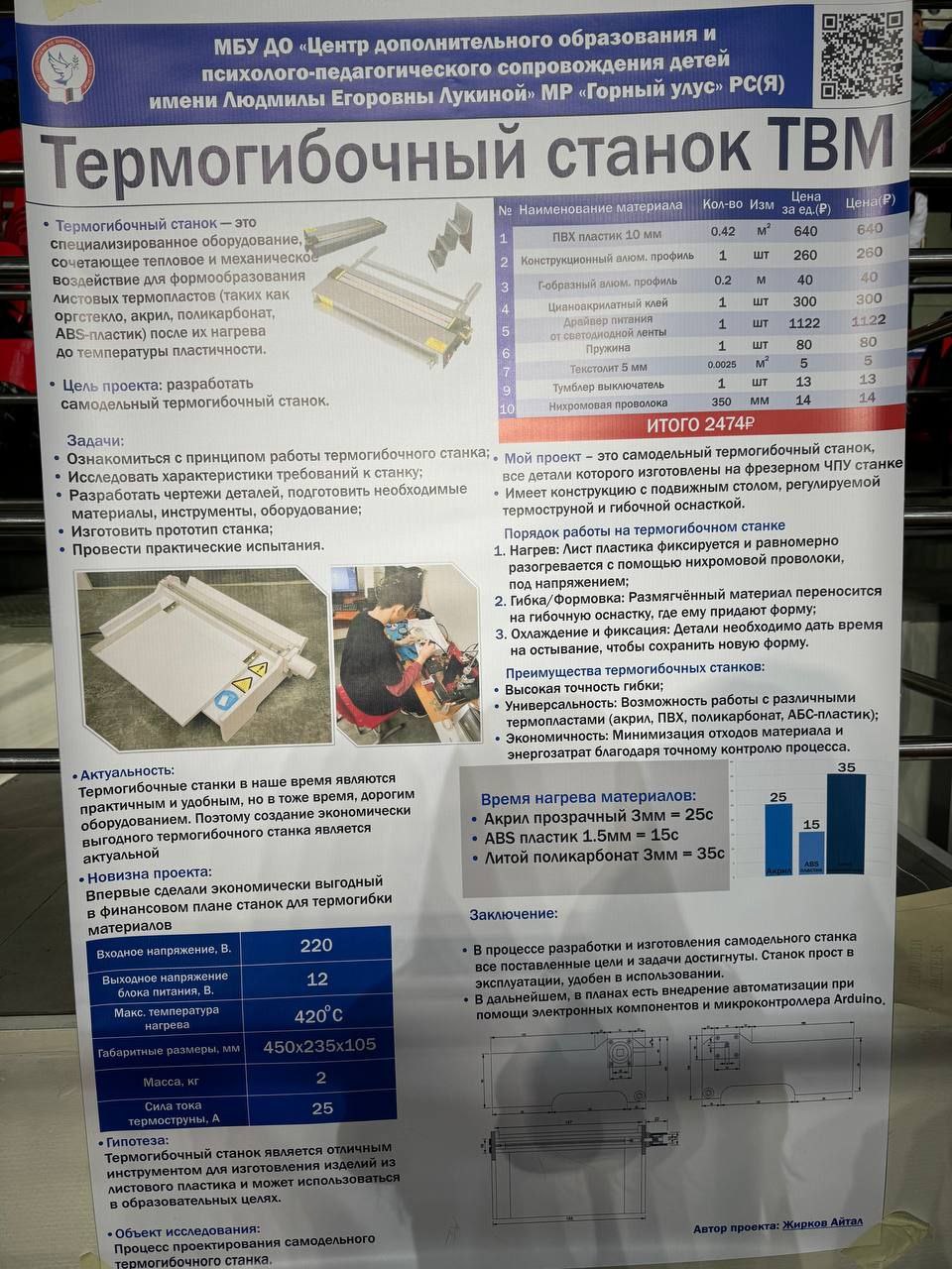Ученик из Горного улуса представил инновационный проект термогибочного станка