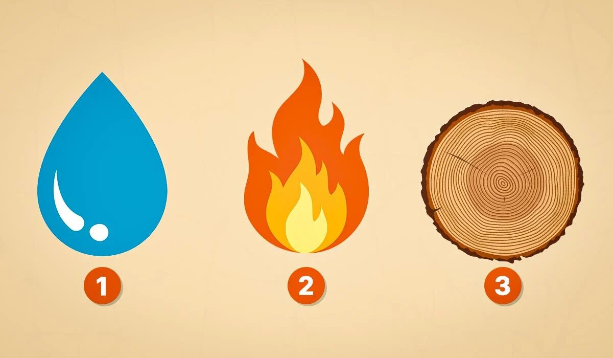 Участникам предложено выбрать один из трех элементов: вода, огонь или дерево. Подсознательный выбор раскрывает вашу внутреннюю сущность и то, как вас воспринимают окружающие. Давайте рассмотрим, что означает каждый из элементов.