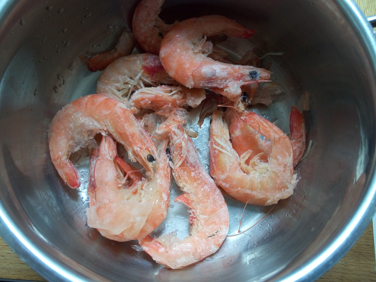 - Сначала следует разогреть сковороду с небольшим количеством растительного масла и подготовить замороженные креветки. Мгновенная разморозка с помощью кипятка значительно ускоряет процесс.