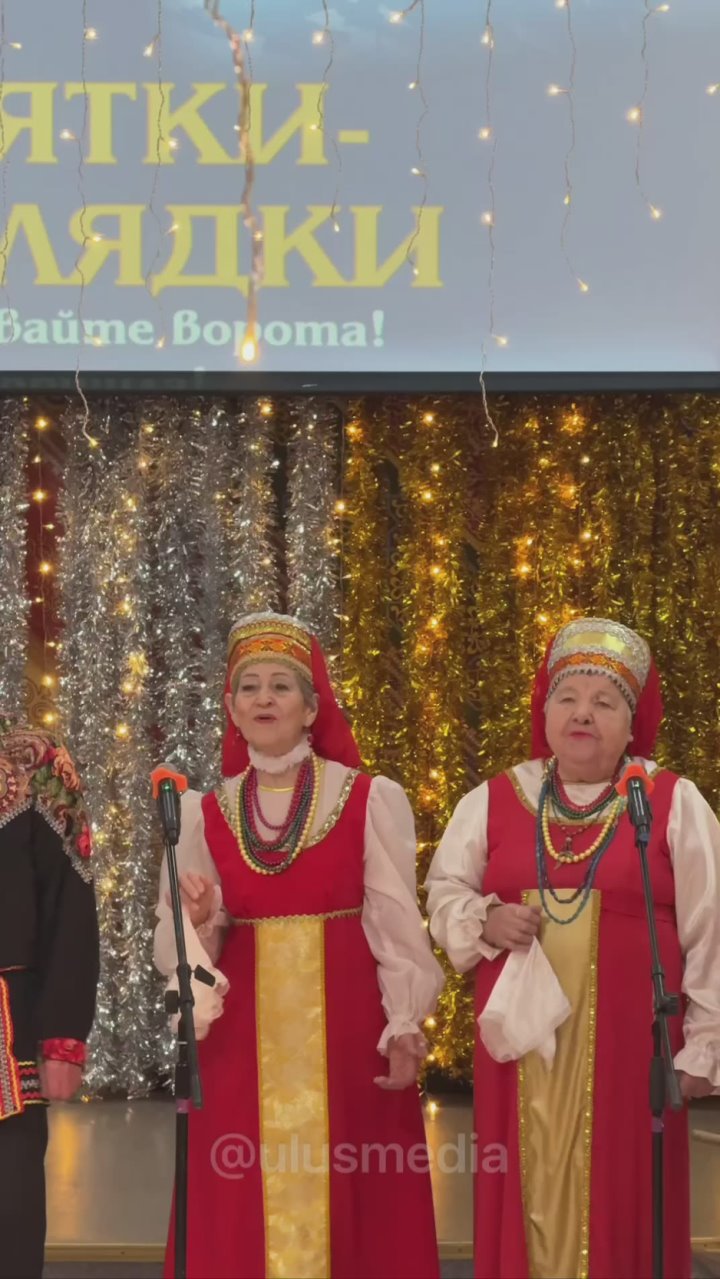 По традиции в святки пели колядки — обрядовые песни с добрыми пожеланиями, водили хороводы, устраивали народные игры и гадания. Так и сегодня в Гостиной Дома дружбы народов им. А. Е. Кулаковского звучали весёлые и задорные песни в исполнении местных ансамблей, создавая атмосферу настоящих зимних гуляний и живой связи с традициями предков.