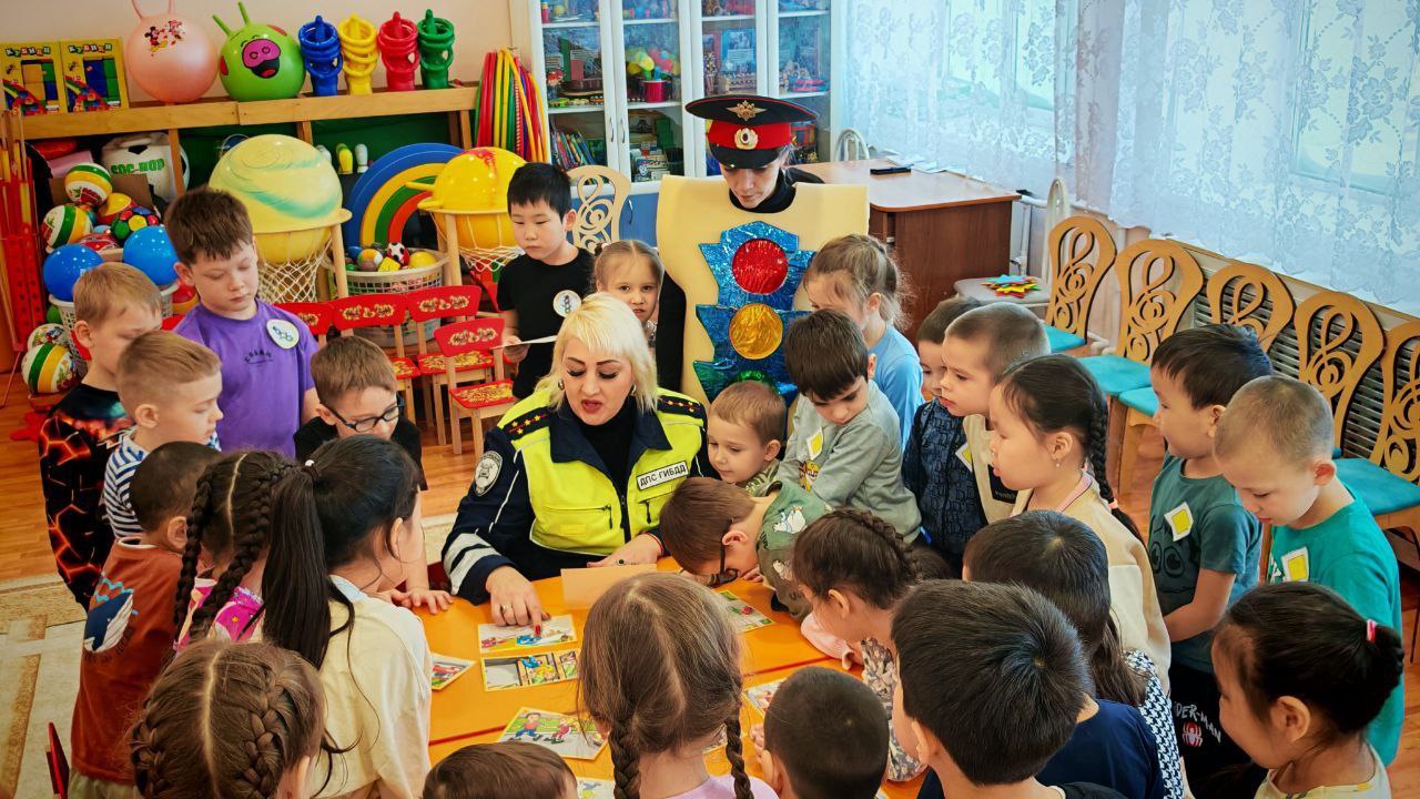 Сегодня особенный день – день, когда маленькие исследователи отправятся в увлекательное путешествие по Стране Дорожных Знаков. В МБОУ ЦРР Д/С "Светлячок" вместе с инспектором ОВ ДПС отделения Госавтоинспекции ОМВД России по Алданскому району капитаном полиции Макеевой Оксаной Александровной в гости к ребятам пришёл Светафорчик и Розочка.