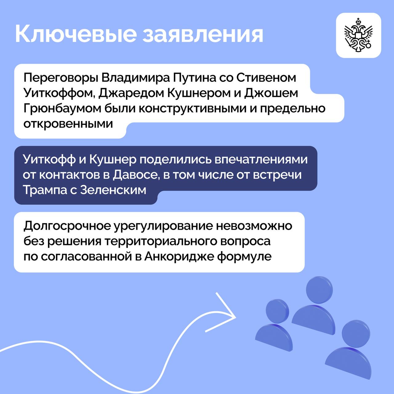 Помощник Главы государства Юрий Ушаков прокомментировал итоги встречи лидера России со спецпосланником Президента США Стивеном Уиткоффом и членами американской делегации