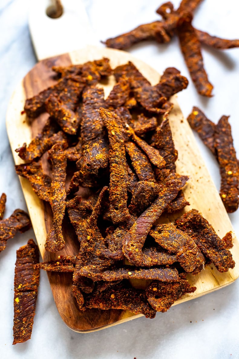 Готовое вяленое мясо можно хранить в холодильнике до 1 месяца, а в вакуумной упаковке — до 3 месяцев. Для длительного хранения рекомендуется заморозить.