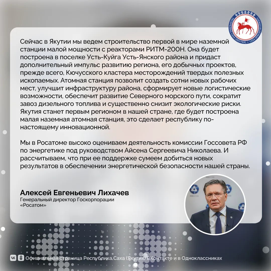 Генеральный директор Госкорпорации «Росатом» Алексей Евгеньевич Лихачев дал комментарий об итогах работы комиссии Госсовета Российской Федерации по энергетике за 2025 год