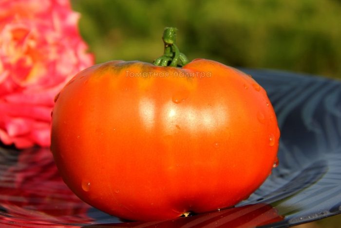 Плоды — крупные, 600–800 граммов и более, с сердцевидной формой и розовой кожицей. Мякоть плотная, с минимальным количеством камер, что делает томаты подходящими для переработки и сохранения вкусовых качеств. Вкус сладкий, с лёгкой кислинкой, идеален как для салатов, так и для заготовок.