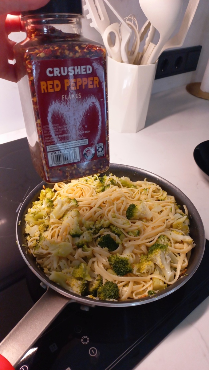 В конце, по желанию, можно посыпать порцию красными хлопьями перца — для небольшой пикантности. Приятного аппетита.