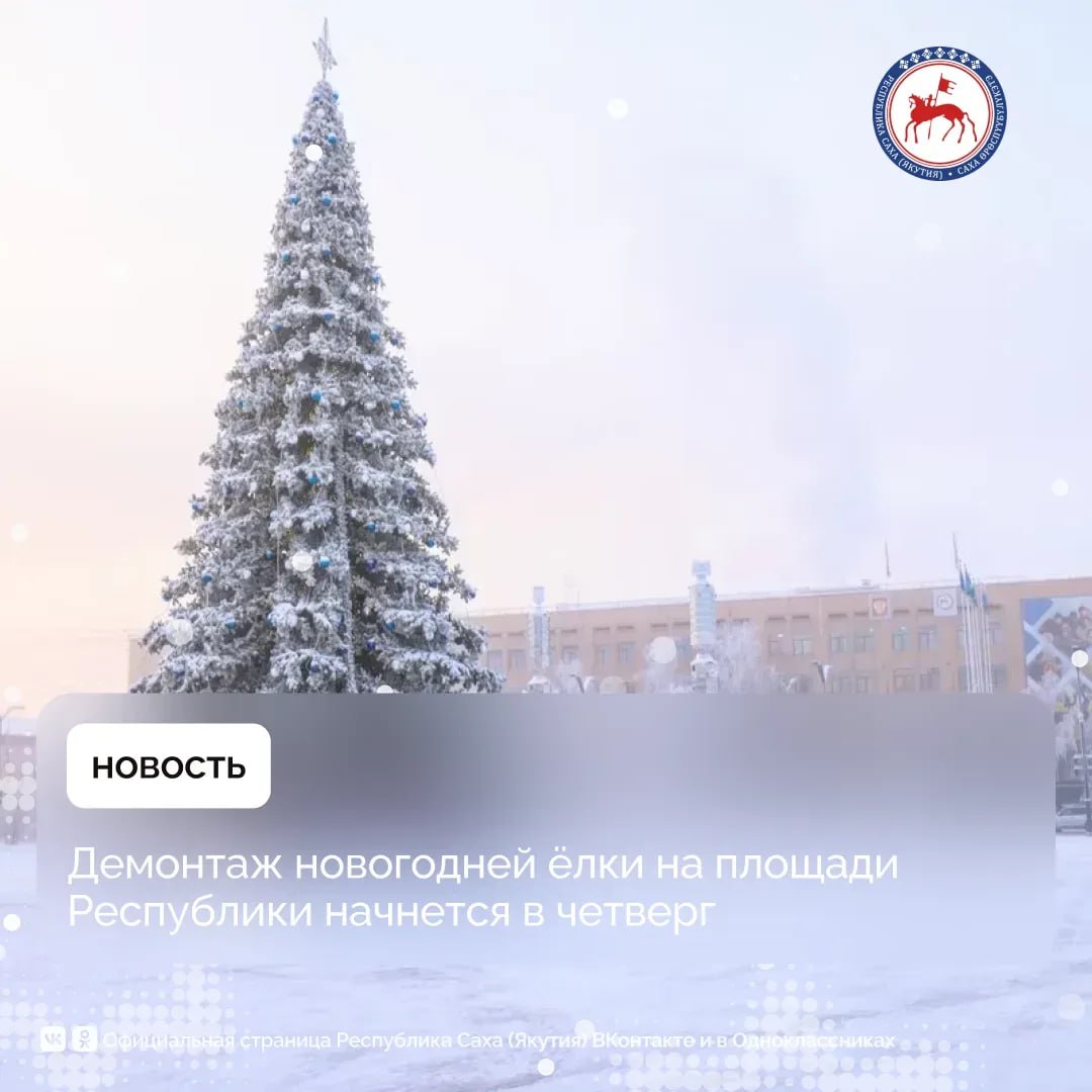 Завтра, 29 января, начнутся работы по демонтажу главной новогодней ёлки на центральной площади столицы республики. Об этом сообщил руководитель ГБУ РС(Я) «Служба эксплуатационно-технического обеспечения» Александр Трофимов.