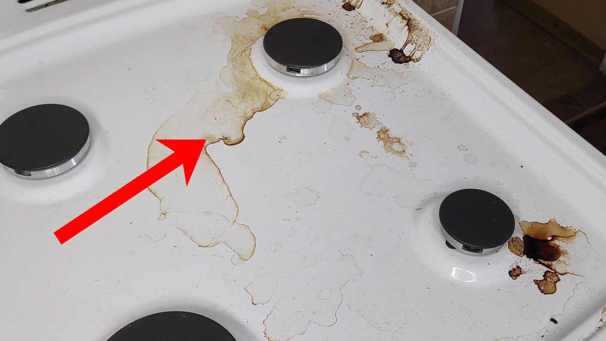Небольшое количество кипятка потребуется для активирования соды: полейте им плиту, избегая попадания внутрь конфорок. Теплая вода помогает размягчить жир и ускоряет процесс чистки.
