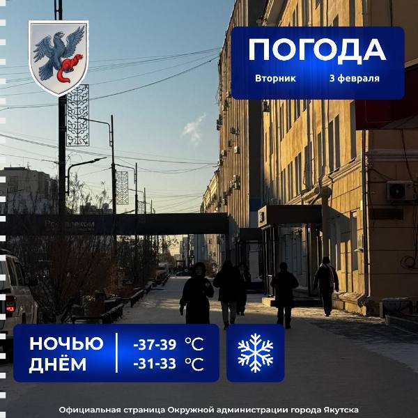 Температура воздуха ночью -37-39°, днём -31-33°.