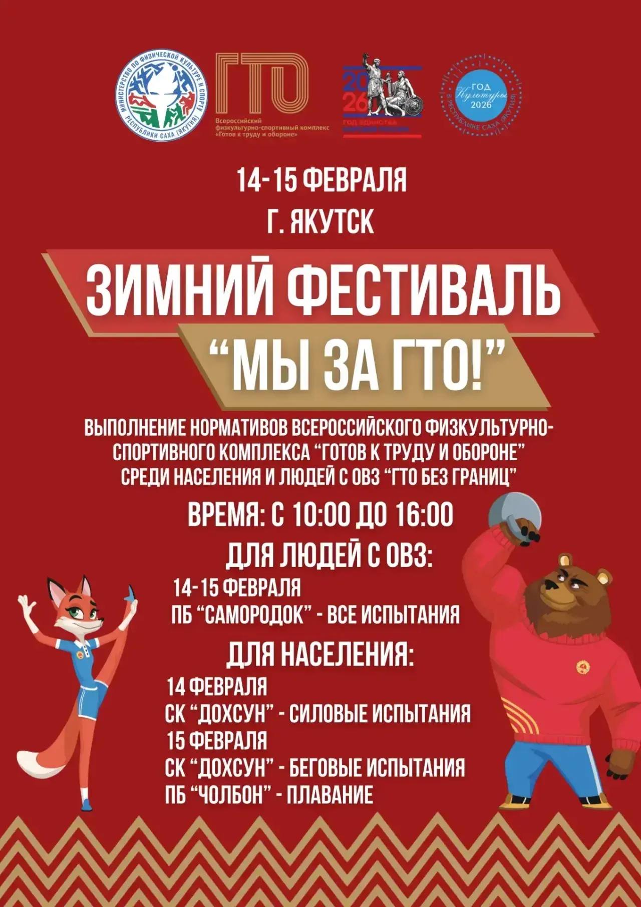 14–15 февраля 2026 года в столице республики пройдёт Зимний фестиваль «Мы за ГТО!» — масштабное спортивное событие по выполнению нормативов Всероссийского комплекса «Готов к труду и обороне»