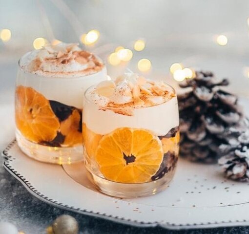 Вкусный десерт: сочетание сливок, сухофруктов и мандаринов на вашем столе