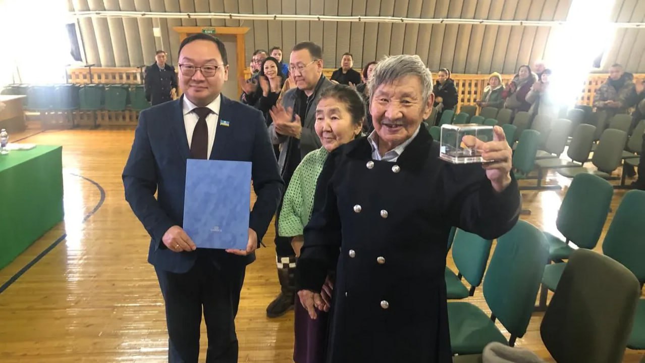 Георгий Степанов вручил Борису Неустроеву – Мандар Уус копию именного алмаза.