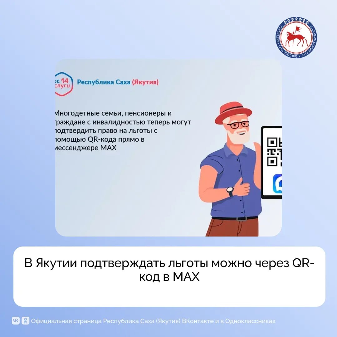 Многодетные семьи, пенсионеры и граждане с инвалидностью теперь могут подтверждать право на льготы с помощью QR-кода в мессенджере МАХ, сообщили в Министерстве инноваций, цифрового развития и инфокоммуникационных технологий Якутии.