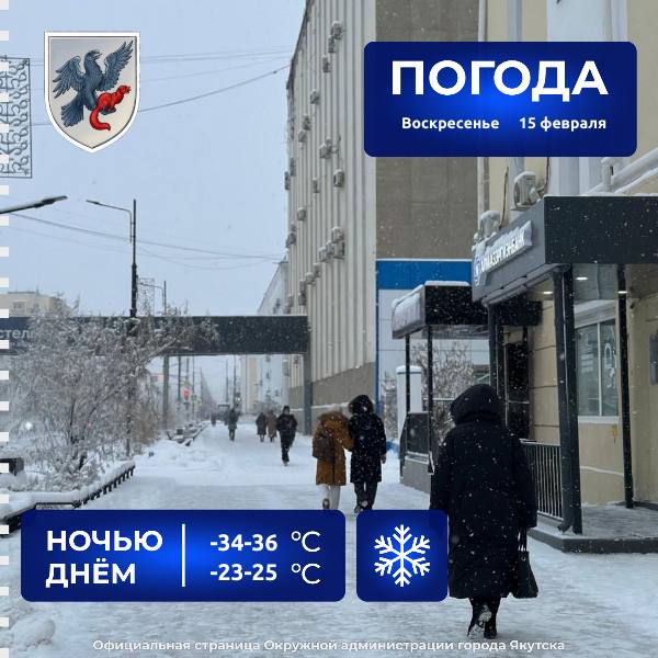Небольшой снег, ветер ночью юго-западный, днем восточный 2-5 м/с.Температура воздуха ночью -34-36°, днём -23-25°.Подписывайтесь на наши каналы: ВКонтакте | МАХ | Телеграм