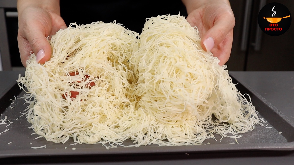Основой начинки служит тесто катаифи, которое можно приобрести готовым или сделать самостоятельно. Для этого 50 г теста мелко нарезают и обжаривают на сковороде с небольшим количеством масла до золотистого оттенка. Этот этап очень важен — он придаст начинке хрустящую текстуру и аппетитный аромат.