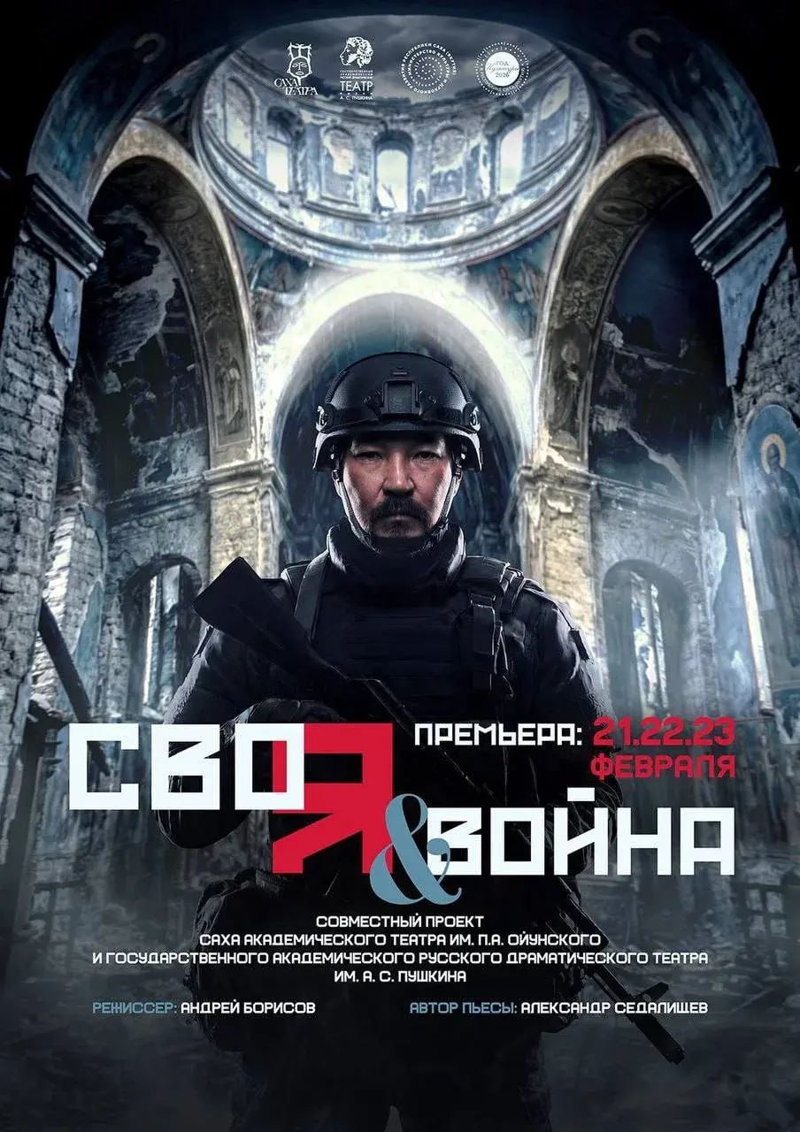 Премьера спектакля «СВОя война» состоится 21, 22 и 23 февраля в 17:00. Билеты можно приобрести онлайн и в кассе Саха театра, которая работает ежедневно с 10:00 до 18:00.