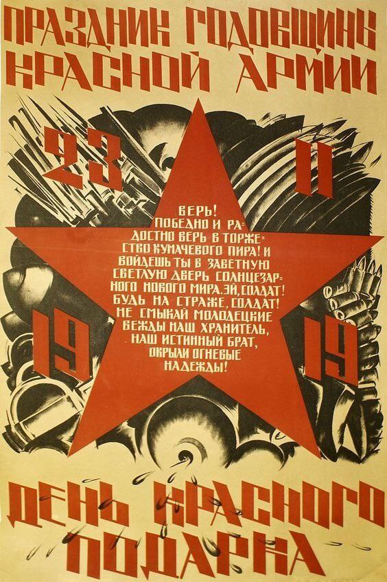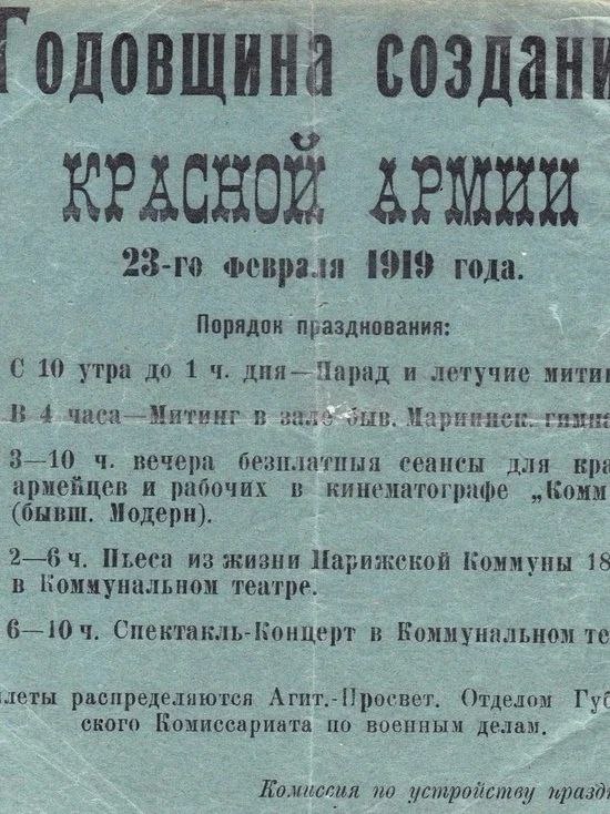 23 февраля - важная дата в истории России. В 1919 г. было принято решение отметить годовщину РККА, созданную 28 февраля 1918 г. Целесообразнее было совместить событие с уже объявленным на 17 февраля Днем Красного подарка, акцией по сбору средств для Красной Армии. Новый праздник отметили в ближайшее воскресенье от Дня Красного подарка - 23 февраля. В этот день в Петрограде на Дворцовой площади был организован военный парад, по стране проводились митинги и театрализованные представления. В 1920 и 1921 гг. в связи с тяжелым военным положением на фронтах годовщины РККА широко не отмечались. Праздник приобрел масштаб в связи с 5-летием РККА: 23 февраля 1923 г. был объявлен всенародным праздником. В этот день предлагалось чествовать героев Красной Армии, а также награжденных орденом Красного Знамени. В 1946 г. праздник стал называться Днем Советской Армии, в 1949 г. в название включили Военно-морской флот. Современное звучание - День защитника Отечества - праздник приобрел в 1995 г.