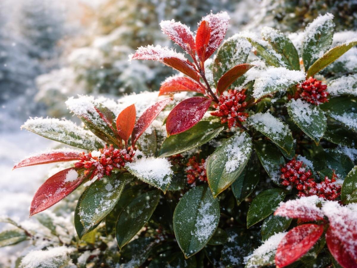 Основная угроза для вечнозелёных кустарников заключается в резких температурных перепадах, промерзании корней и иссушении листьев под воздействием холодных ветров. Особенно уязвимы растения с южным происхождением, привыкающие к более мягкому климату. В условиях средней полосы важно выбирать защищённые места для посадки, использовать мульчирование и продуманные меры зимовки, особенно для контейнерных растений.