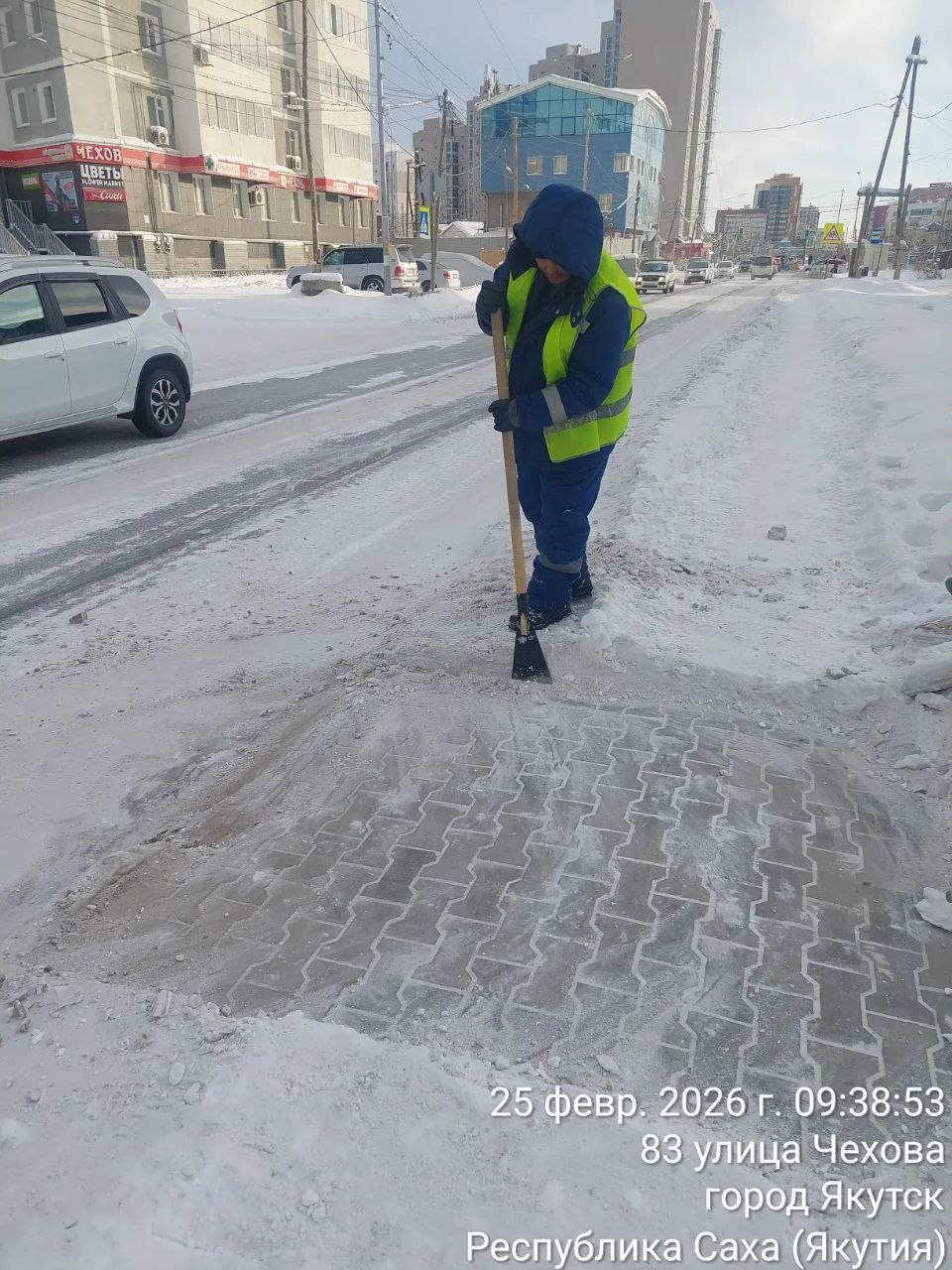 Наши дворники с раннего утра очищают тротуары, пешеходные переходы и подходы к остановкам и социальным объектам.