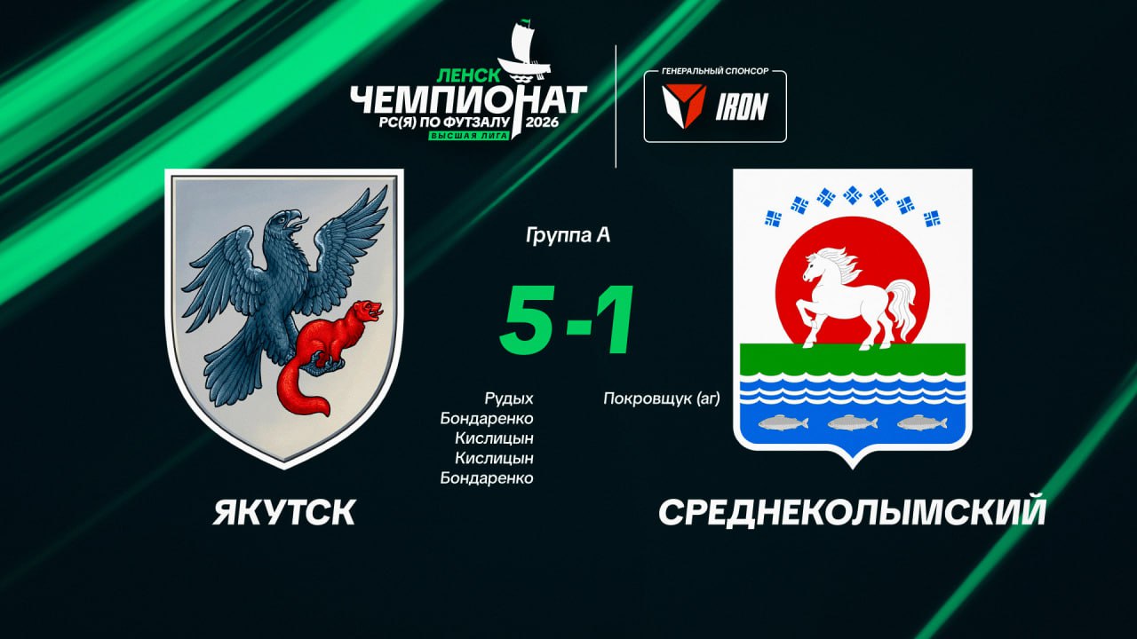 Сборная г. Якутска уверенно выиграла команду Среднеколымского улуса. По дублю сделали Роман Бондаренко и Алексей Кислицын.