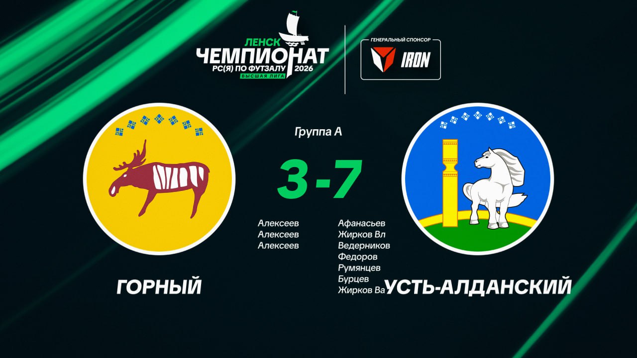 Сборная Усть-Алданского улуса, в важнейшем для себя, матче выигрывает у Горного улуса. У номинальных хозяев хет-триком отличился Уруйдаан Алексеев.