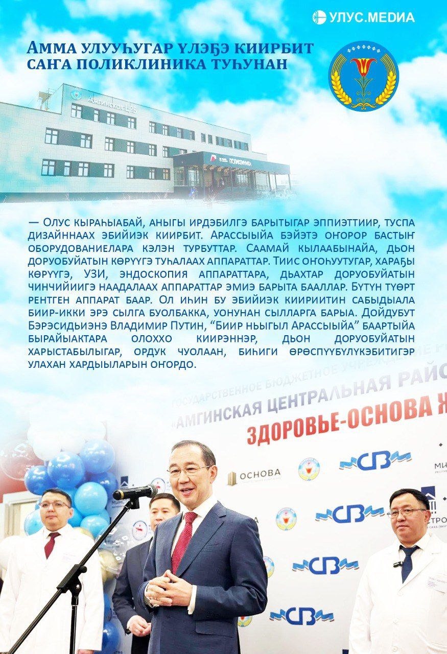 Тохсунньуга Айсен Николаев Аммаа саа поликлиника арыллыытыгар кыттан, олохтоохтор рлэрин ллэcтибитэ. Сырыы кэмигэр Ил Дархан «Амма олоо» улуус хаыата бэлэмнээбит ыйытыыларыгар хоруйдаабыта, ааааччыларга ыллыктаах санаатын тиэрдибитэ.