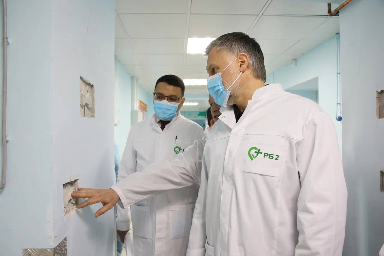 В РБ2 основное внимание уделили вопросу капитального ремонта лечебного блока А, который находится в аварийном состоянии. Это почти половина площадей больницы, и сегодня пациенты и медицинские работники испытывают в связи с этим серьезные неудобства. Очевидно, что без комплексного обновления площадей обеспечить в полной мере комфортные условия для лечения и работы невозможно.