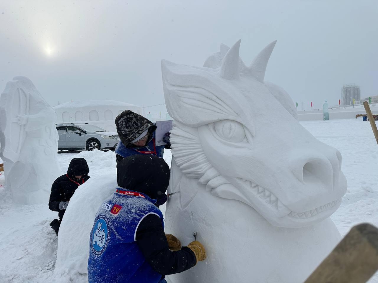 В ледовом парке «Северное сияние» кипит атмосфера творчества и вдохновения. Вчера команды приступили к созданию снежных скульптур — на площадке уже готовы образы, а участники с головой погружены в работу.