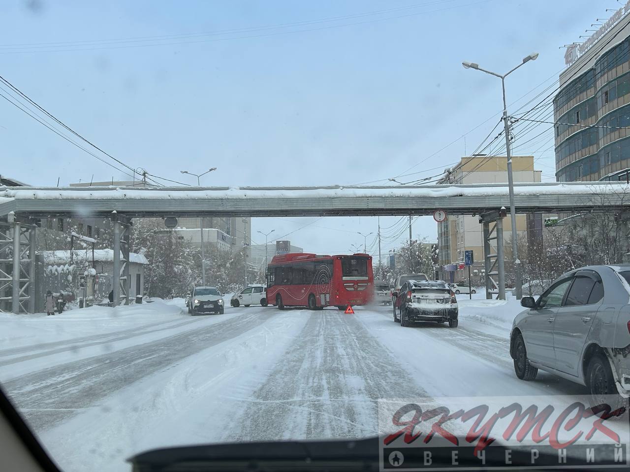 Авария с автобусом на Ойунского. Движение затруднено.