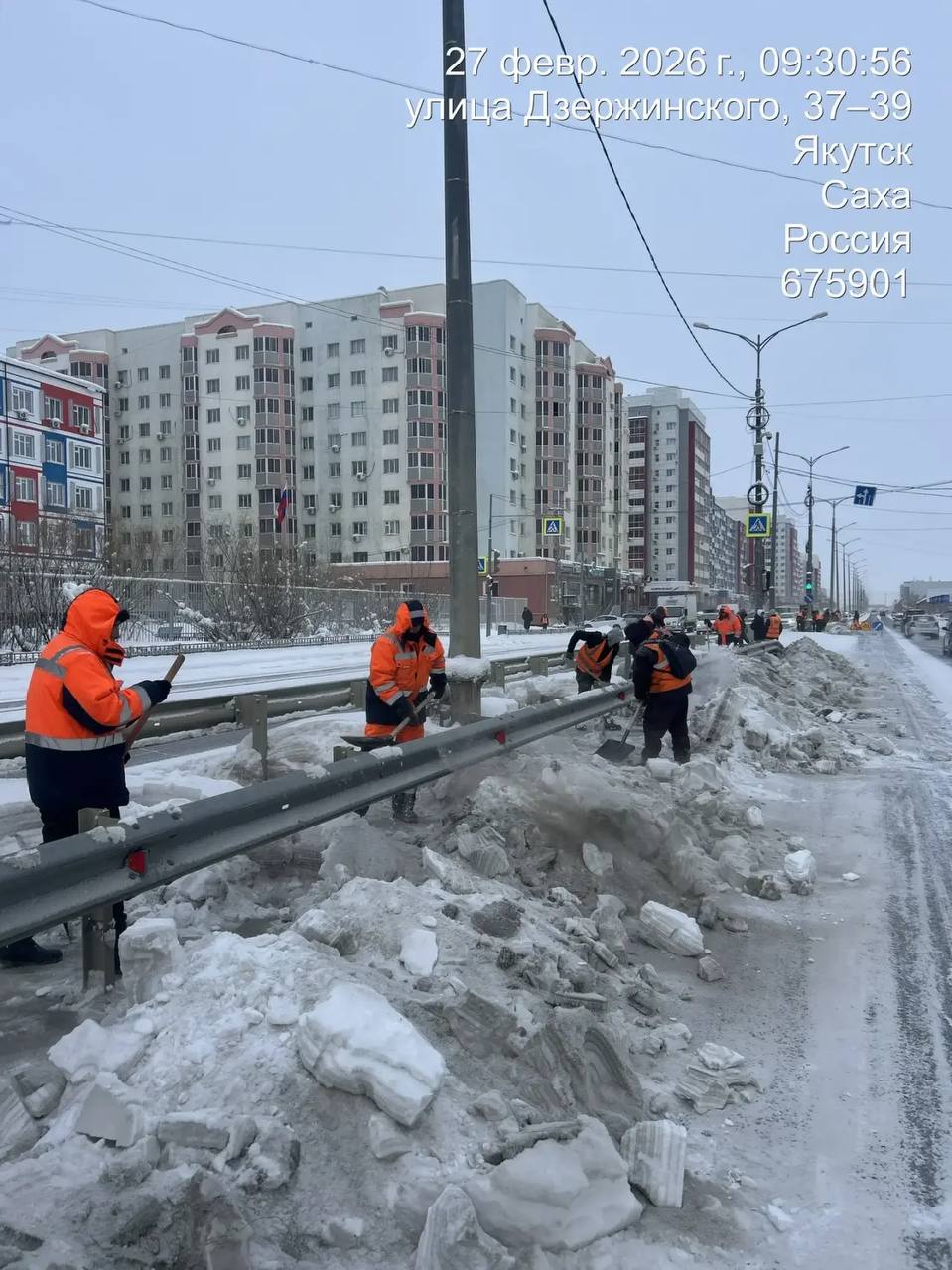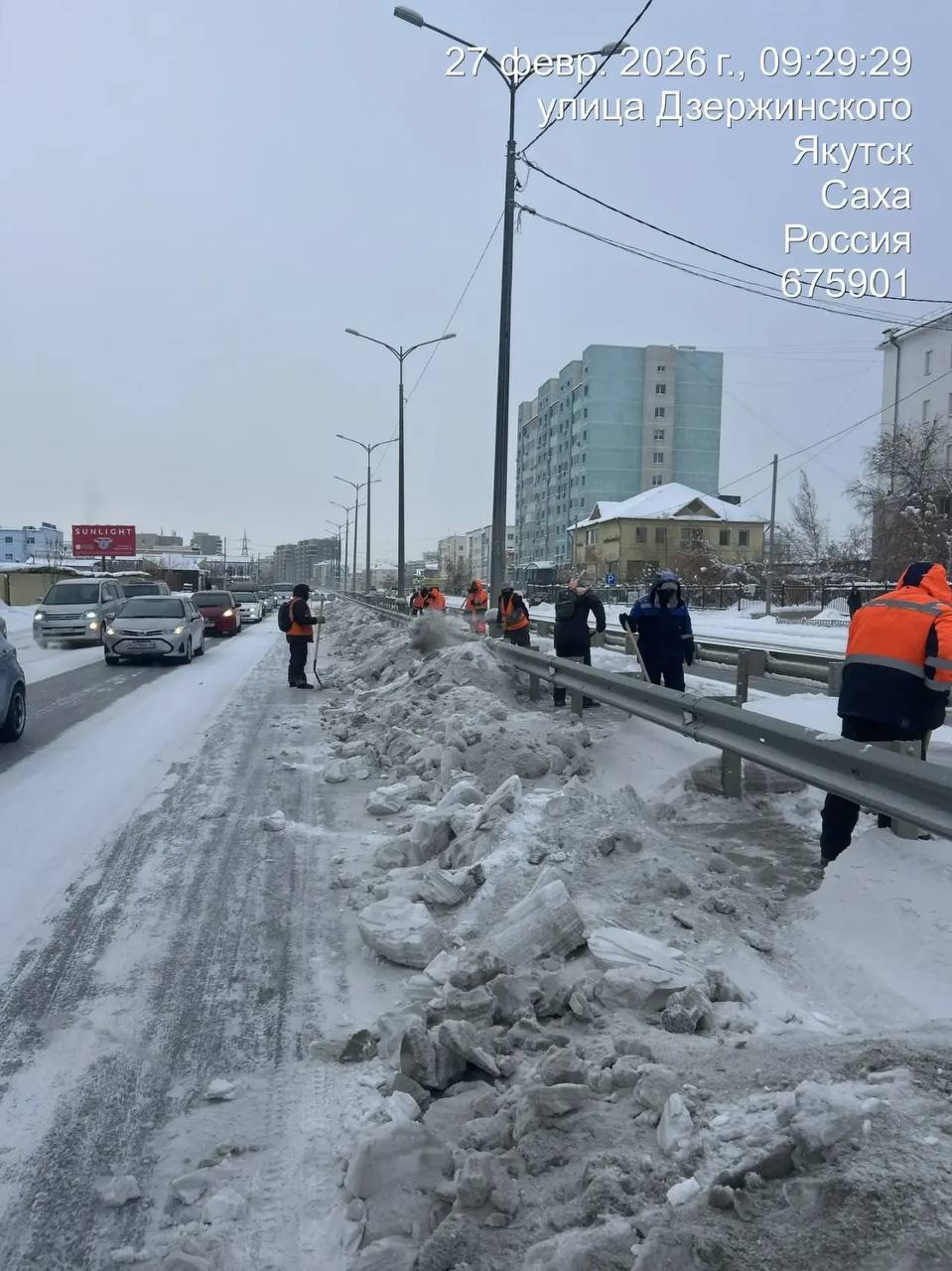 Очистка, подготовка под вывоз снега с разделительной полосы.