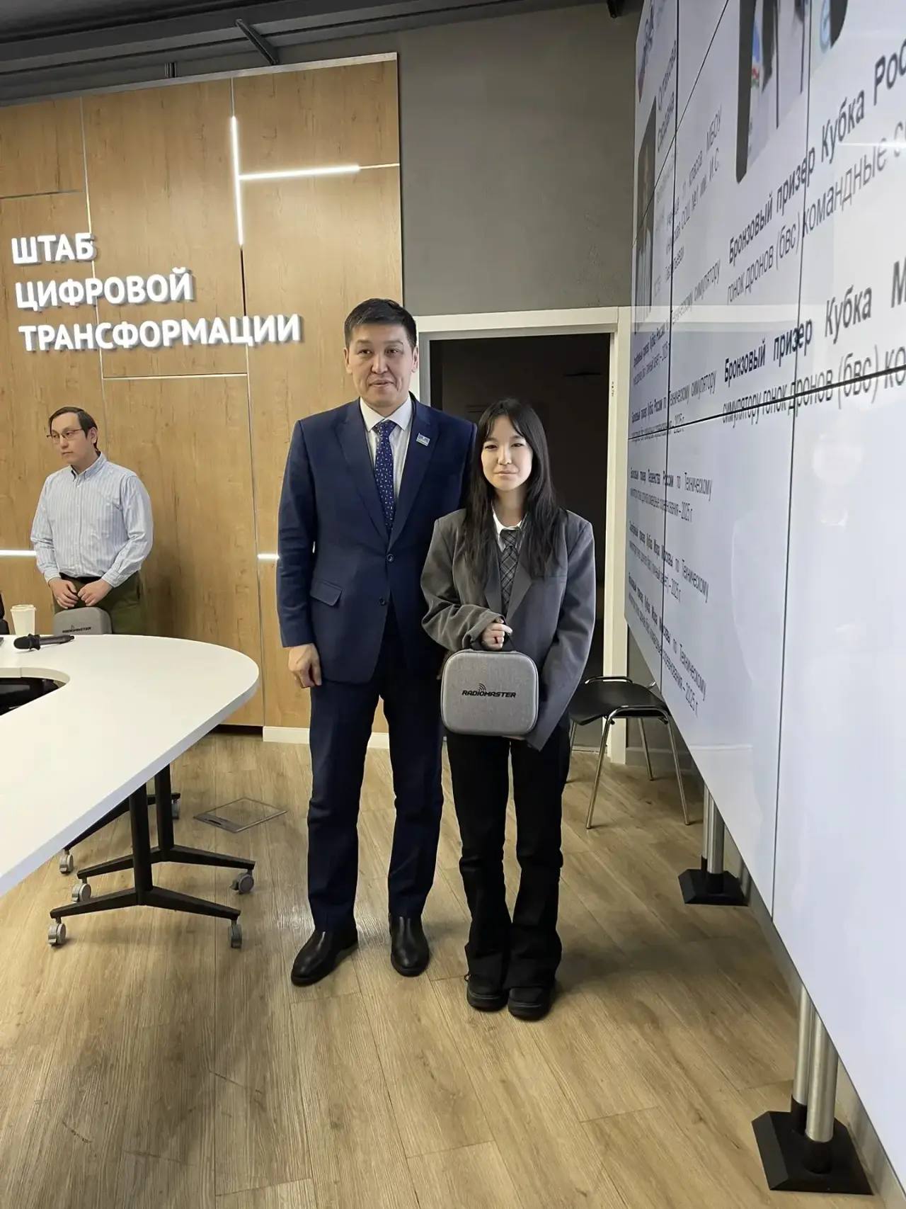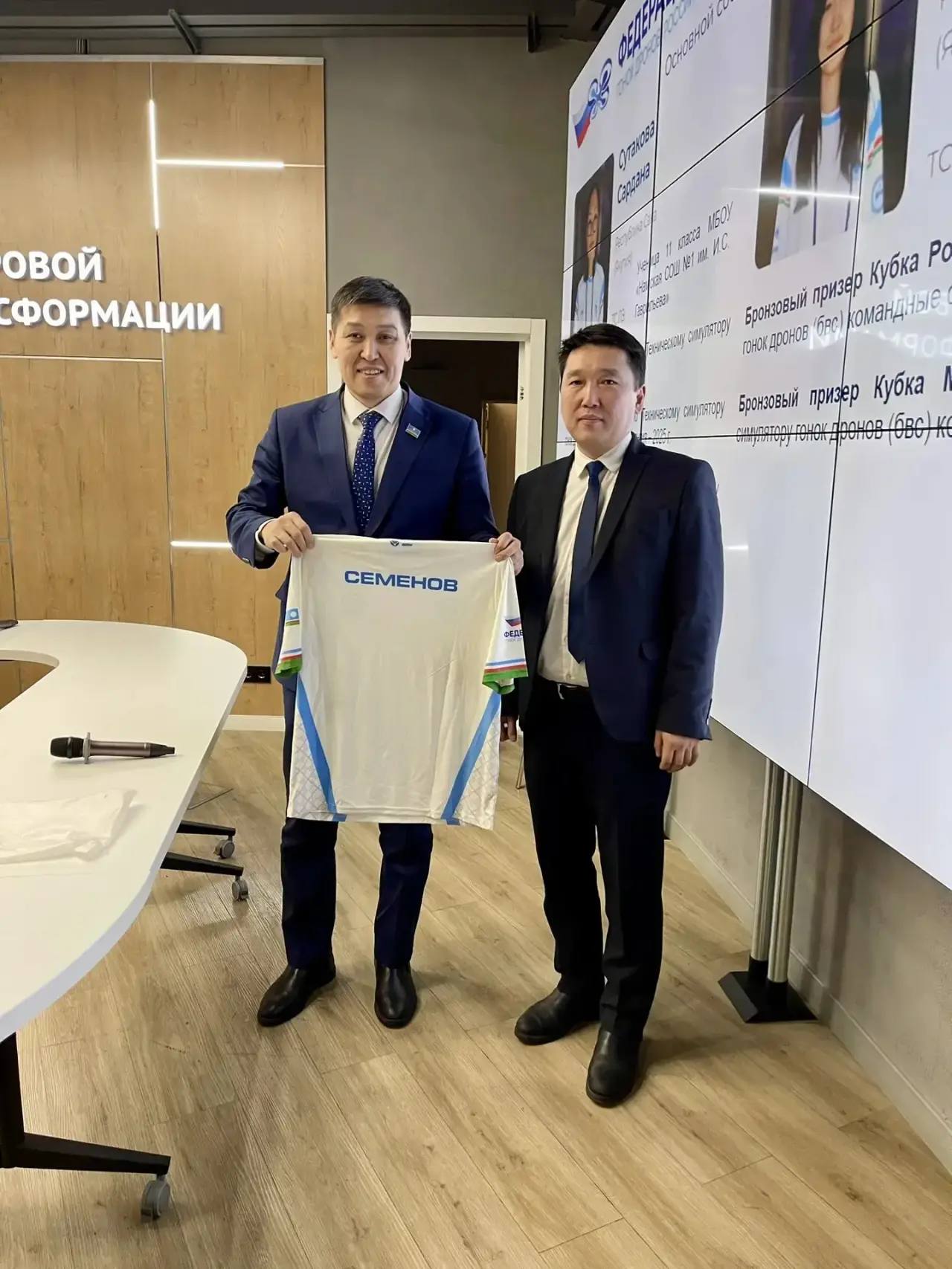 В конце встречи поздравили наших спортсменок, вошедших в сборную России по гонкам дронов. Удалось лично поздравить Уйгулаану Антоеву, ученицу Арктической школы в г. Якутске, а Сардана Сутакова, ученица Намской СОШ № 1, в это время участвовала в олимпиаде. Вручили им профессиональные пульты управления. Девушки — настоящий пример упорства и мастерства! Молодцы!