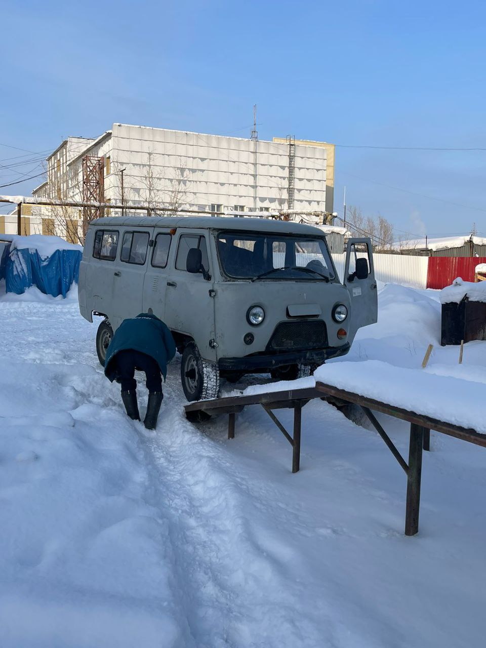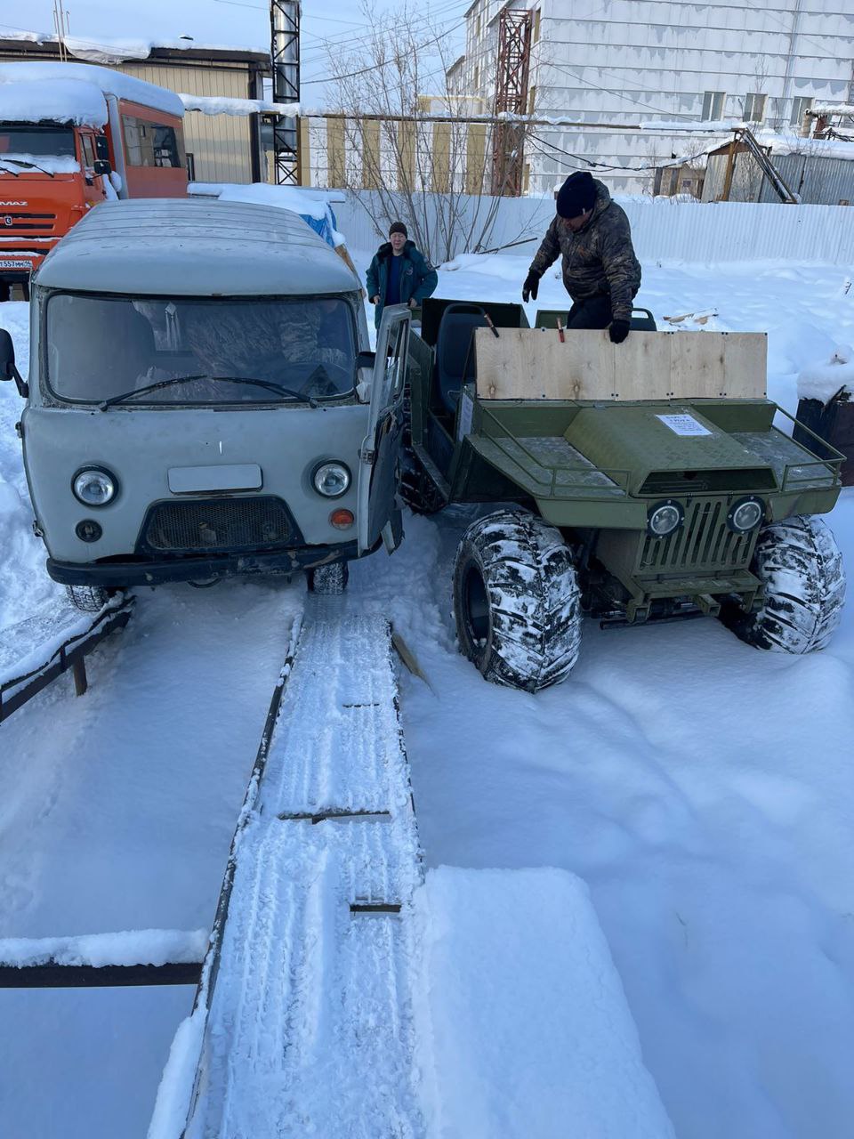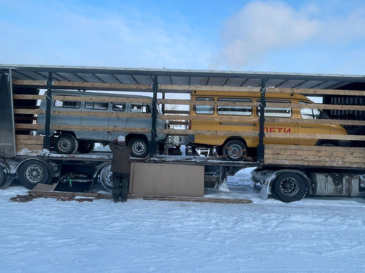 По фотоинформации Андрея Бережнова: отремонтированная в Среднеколымске машина загрузилась в Якутске для отправки в зону СВО