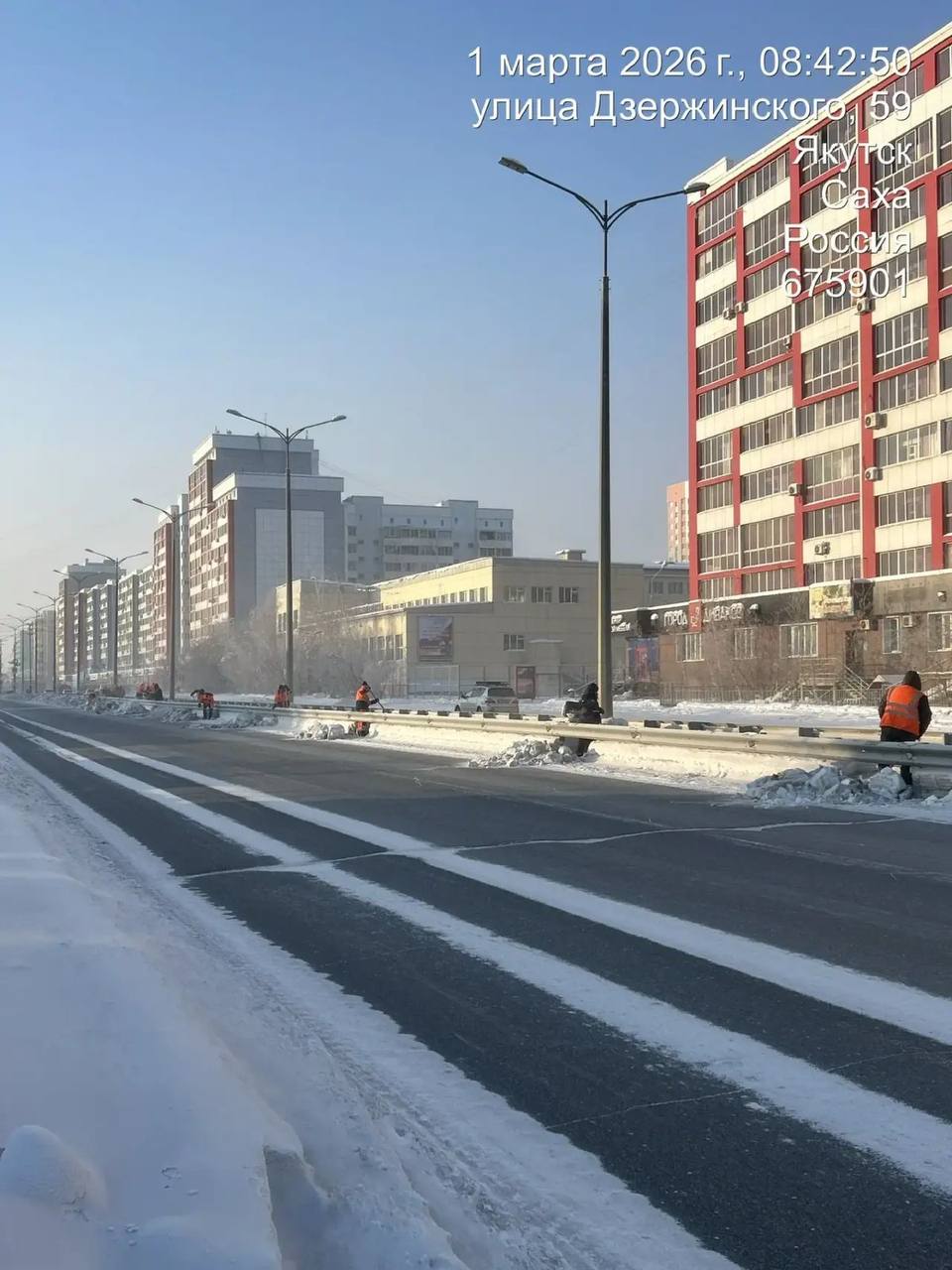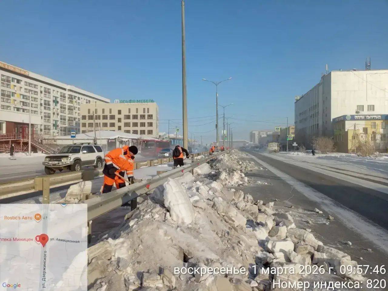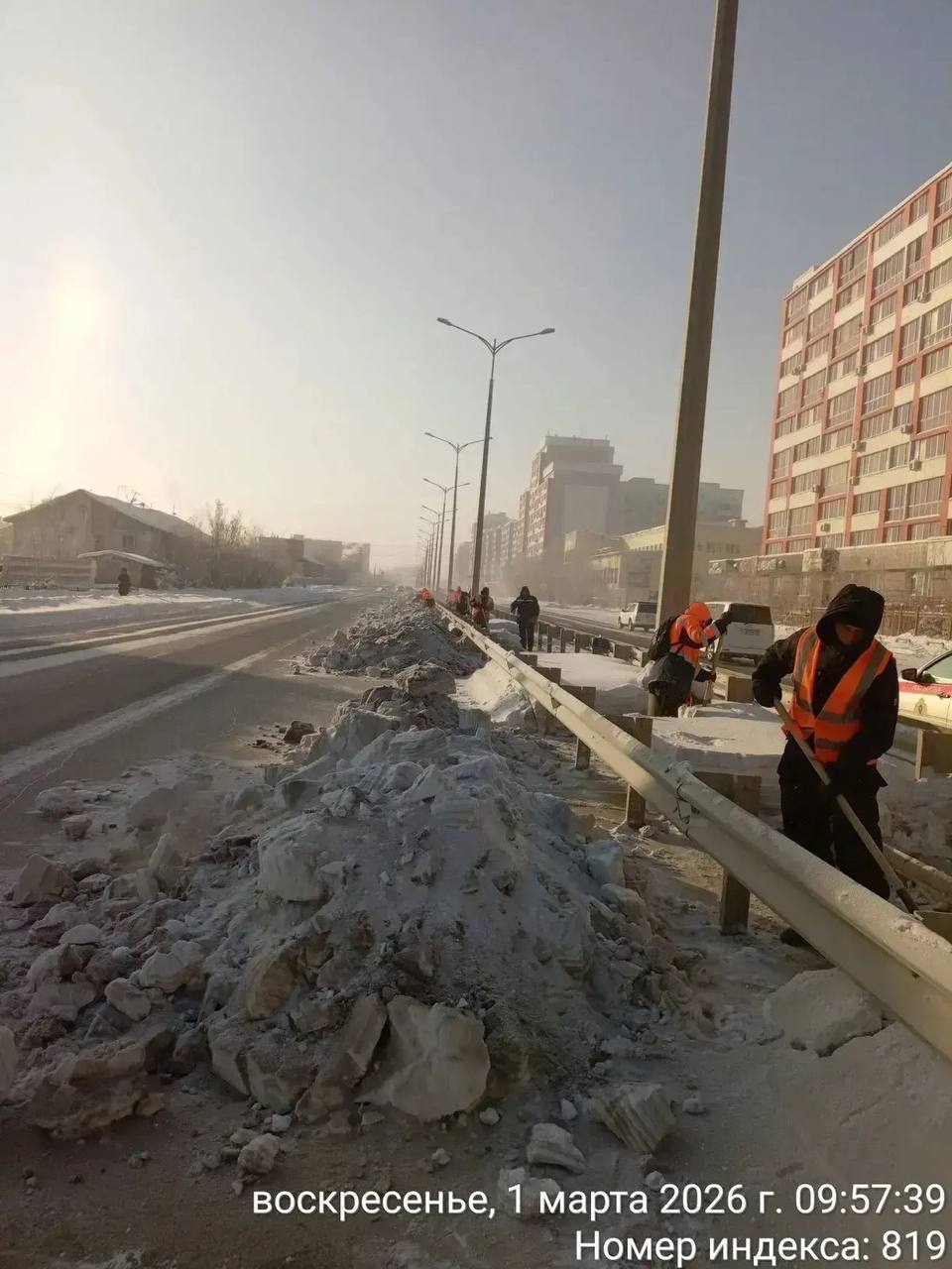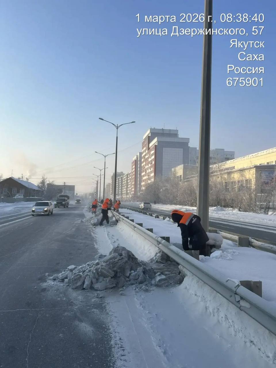 Продолжаются работы по очистке, подготовке под вывоз снега с разделительной полосы.
